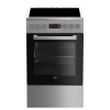 Beko FSM57300GX. Type product: Vrijstaand fornuis, Kleur van het product: Roestvrijstaal, Soort bediening: Draaiknop, Touch. Type kookplaat: Keramisch, Aantal branders/kookzones: 4 zone(s), Vermogen brander/kookzone 1: 1200 W. Grootte oven: Middelmaat, Voedingsbron oven: Electrisch, Netto capaciteit oven: 55 l. Energie-efficiëntieklasse: A, Energieverbruik (conventioneel): 0,88 kWu, Energieverbruik (geforceerde convectie): 0,83 kWu. Breedte: 500 mm, Diepte: 600 mm, Hoogte: 850 mm
