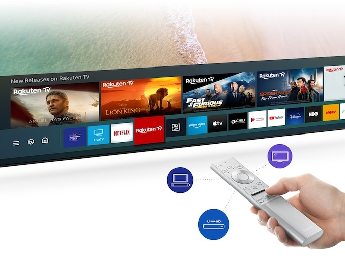 Bevrijd de woonkamer van een onoverzichtelijke hoop afstandsbedieningen. Met de Samsung One Remote Control bedient u niet alleen uw TV, maar al uw aangesloten apparaten met één afstandsbediening.