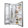 Haier SBS 90 Serie 5 HSW59F18EIMM, Vrijstaand, Amerikaanse deur, Platina, Roestvrijstaal, LED, Op de deur, Glas