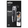 Style je haar gemakkelijk thuis met de Braun haartrimmer. Met de ultrascherpe mesjes trim je haar van elke dikte eenvoudig op de juiste lengte. Met 2 kammen, 17 lengte-instellingen en Memory SafetyLock om je laatste instelling te vergrendelen. Afspoelbaar ontwerp voorzien van een krachtige Ni-MH-batterij met een gebruiksduur van 50 minuten.Inhoud doos: 1x haartrimmer1x kleine kam (3-24 mm)1x grote kam (14-35 mm)1x oplaadstandaard1x etui1x reinigingsborsteltje