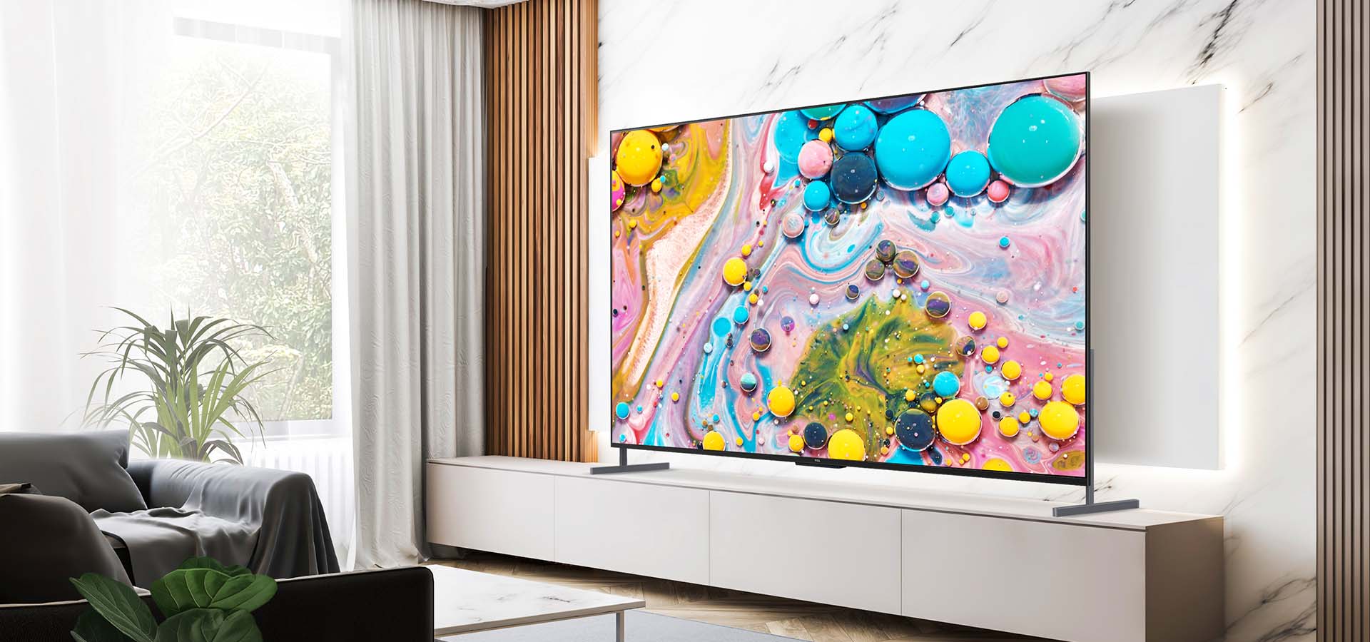Groot scherm zorgt voor een groter beeld, een meer adembenemende diepte en detail toveren je in een mum van tijd om naar een stadion of theater. Maakt u zich zorgen over uw ruimte? Het compatibele ontwerp van de TCL C735 past perfect in uw ruimte. Ook zorgt deze 4K tv voor een scherpe en heldere weergave, ook als je dichter bij het scherm zit.