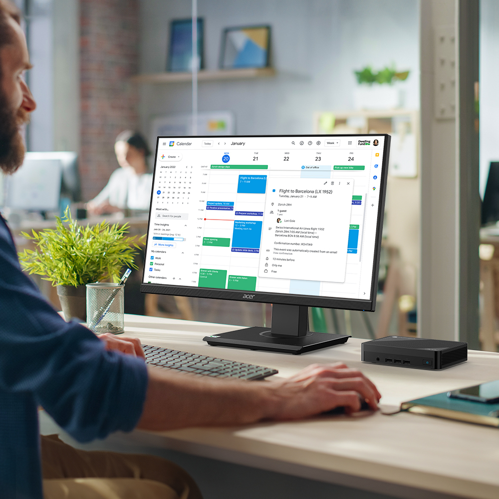 Voorzien van een Intel® Celeron™ N serie processor[1]. De Acer Chromebox is eenvoudig in gebruik en onderhoud, zodat jij je op de belangrijke dingen kunt richten. Met tot 16 GB[1] dual-channel LPDDR4X-geheugen en 128 GB[1] eMMC-opslag heb je meer dan voldoende snelheid en capaciteit voor taken op ChromeOS.nnEen klein apparaat met grootse prestatiesnMet zijn compacte en lichte design biedt de voordelige Acer Chromebox Enterprise Mini CXM1 de vereiste flexibiliteit voor ondernemingen die kiosken en digitale signage gebruiken.nnMonitoren en beherennBeheer al je apparaten en voer snel en zonder stress integraties door, waar je personeel ook zit. Krijg inzicht in de status van je apparaten en gebruik de cloudgebaseerde Beheerdersconsole van Google om waar je ook bent apparaten te beheren en inzicht in de status te verkrijgen.nnHou gegevens veilig met geïntegreerde beveiligingnBescherm je onderneming tegen dreigingen zoals ransomware en malware en tegen fouten van medewerkers dankzij functies voor proactieve beveiliging die gemoedsrust geven ongeacht het aantal ChromeOS-apparaten dat je gebruikt.nnKies een volledig geïntegreerde oplossingnBeheer je apparaten op afstand met proactieve beveiliging om je onderneming veilig te houden en gebruik Kiosk & Signage Upgrade voor stabiele en consistente apparatennnOptimale connectiviteitnOptimaliseer de connectiviteit met WiFi 61, Bluetooth 5.2[1], RJ45, een ingebouwde interne antenne en alle benodigde poorten voor uitgebreide connectiviteit.nnDuurzaamheidnMet gerecyclede materialen, duurzaam verpakkingsmateriaal, een energiezuinig ontwerp en EPEAT-registratie geeft deze Chromebox gestalte aan ons initiatief Earthion om gedurende de volledige levensduur van het apparaat voor minder afval te zorgen.
