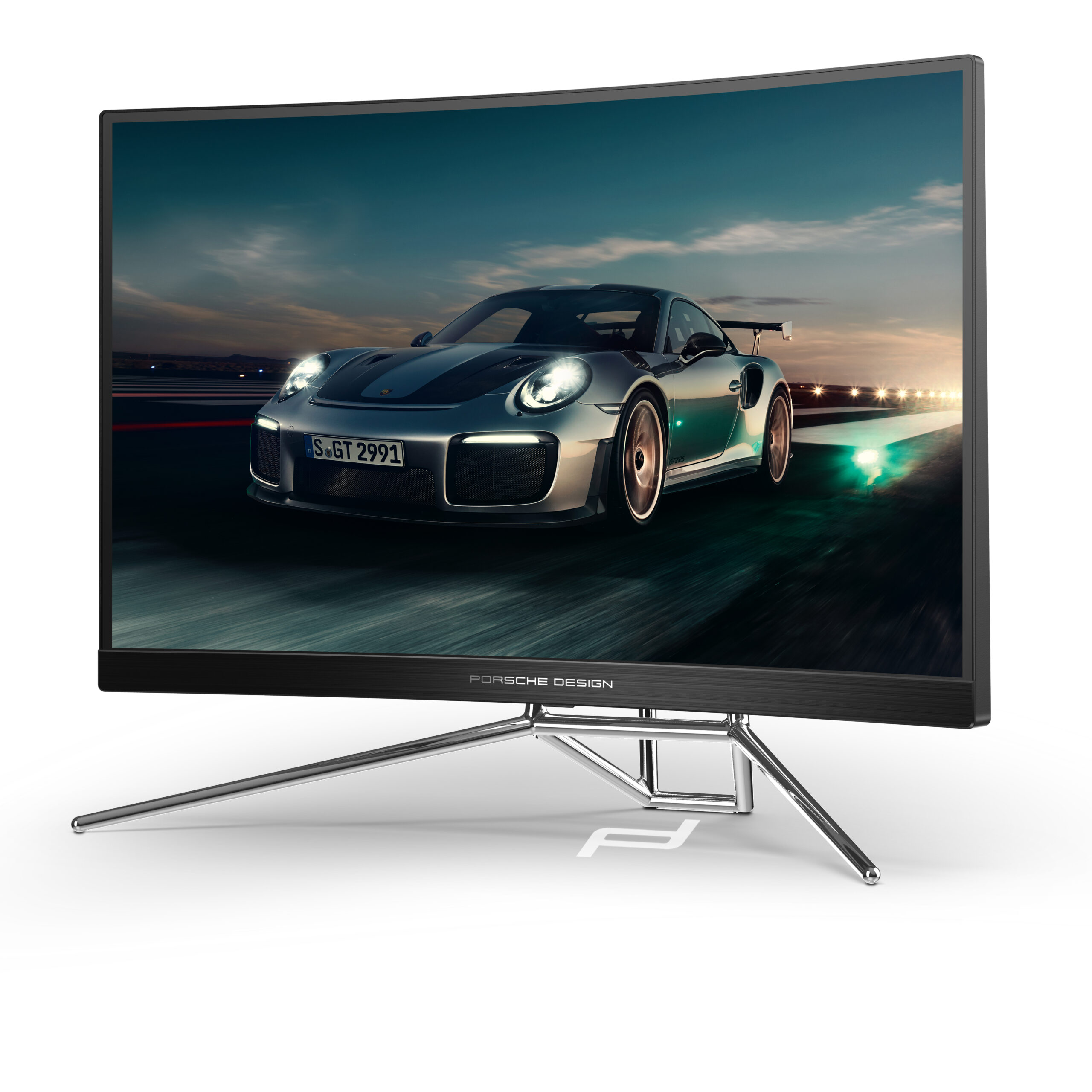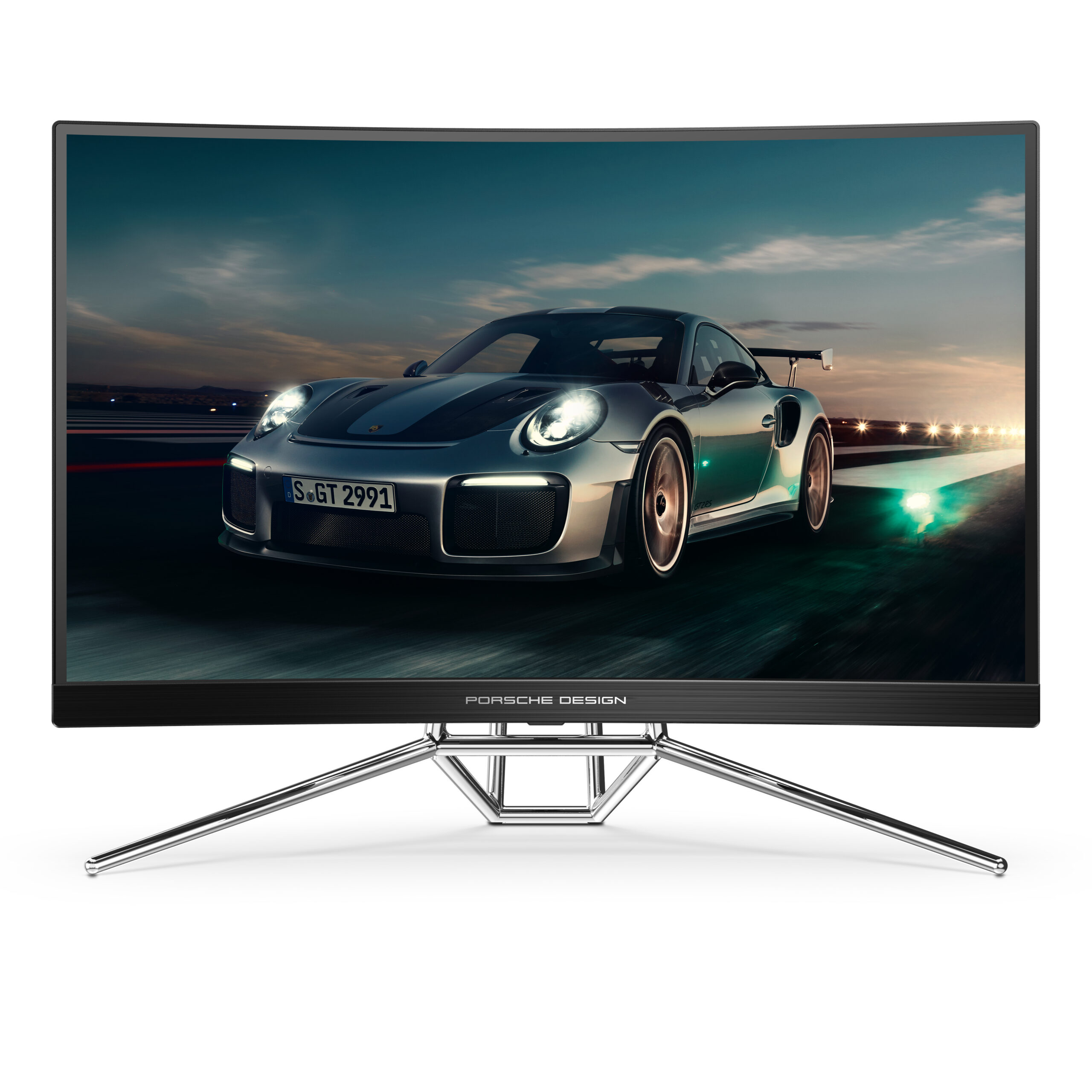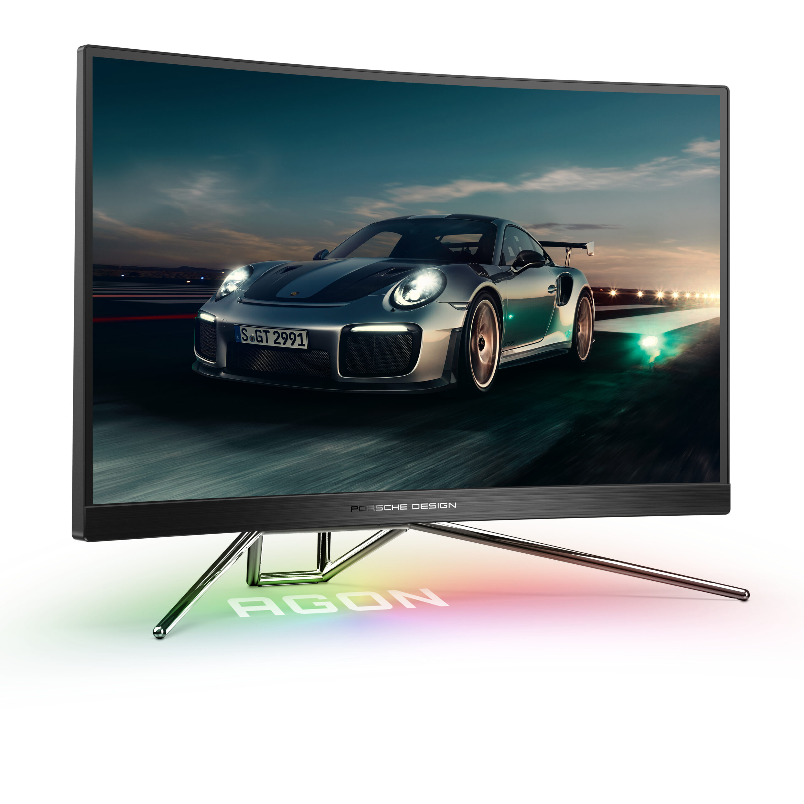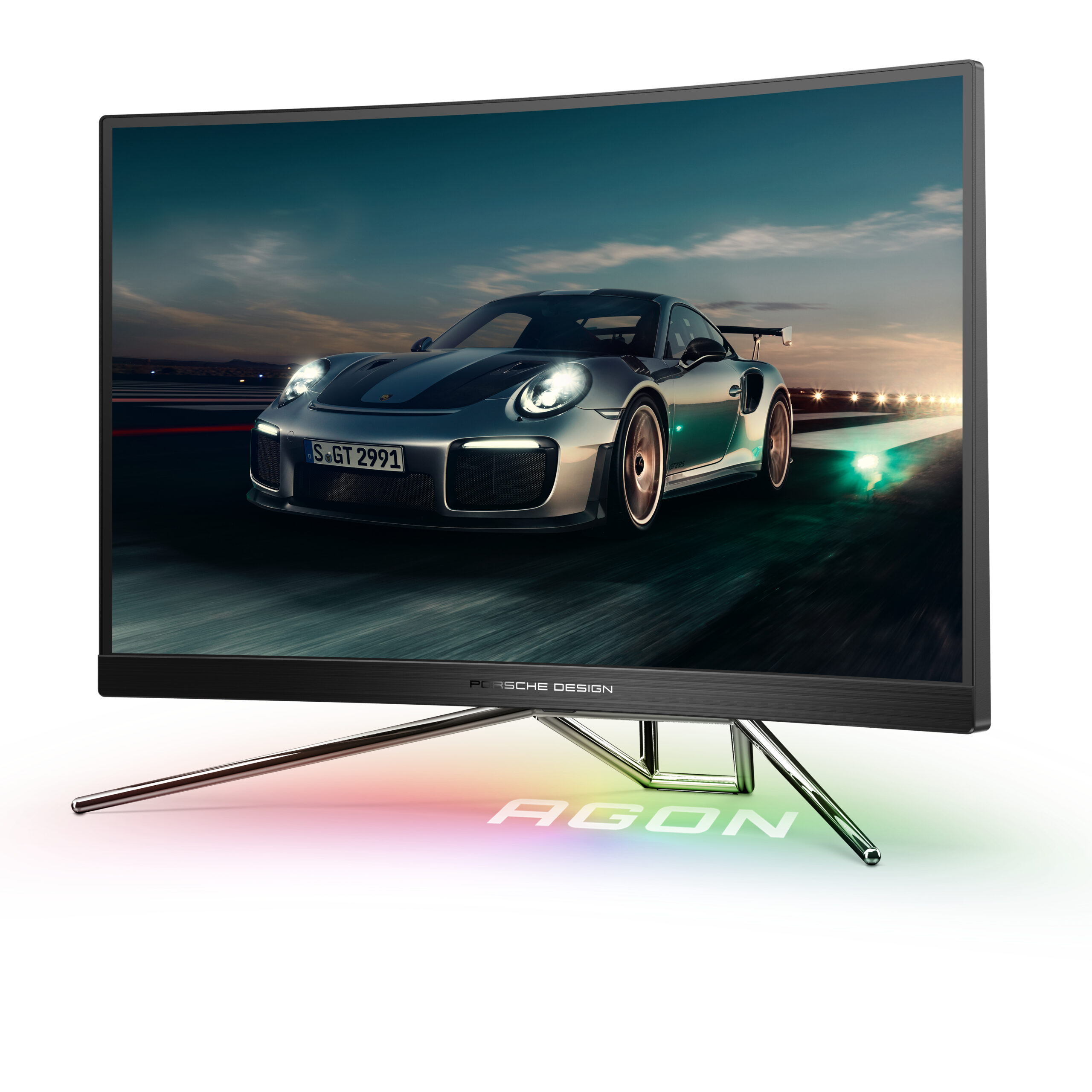 Porsche Design AOC AGON gaming monitor. De 27” biedt als 1000R-gebogen paneel een resolutie van QHD met 240Hz voor de perfecte gaming-ervaring – onafhankelijk van je snelheid.