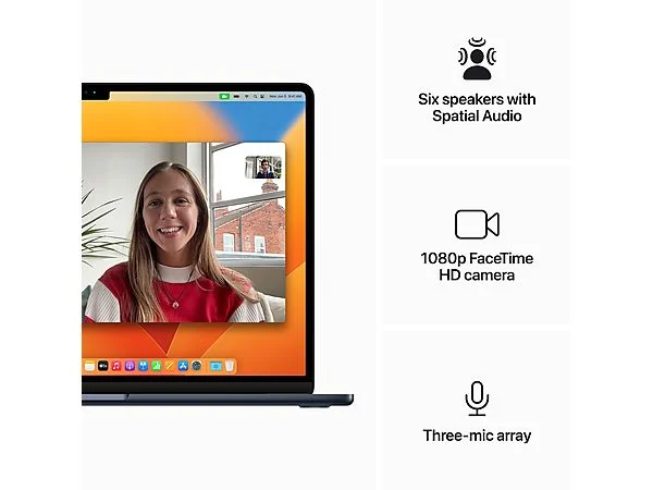 HD-camera. Dankzij de 1080p FaceTime HD-camera kom je goed voor de dag, of je nu gezellig bijpraat met je vrienden of een zakelijk gesprek voert met je collega’s waar ook ter wereld.