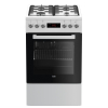 Beko FSE52320DWD. Type product: Vrijstaand fornuis, Kleur van het product: Wit, Soort bediening: Draaiknop, Touch. Type kookplaat: Gaskookplaat, Aantal branders/kookzones: 4 zone(s), Aantal gaspitten: 4 zone(s). Grootte oven: Middelmaat, Voedingsbron oven: Electrisch, Netto capaciteit oven: 55 l. Type oventimer: Digitaal. Energieverbruik (conventioneel): 0,88 kWu, Energieverbruik (geforceerde convectie): 0,83 kWu, Aangesloten lading (gas): 7900 W