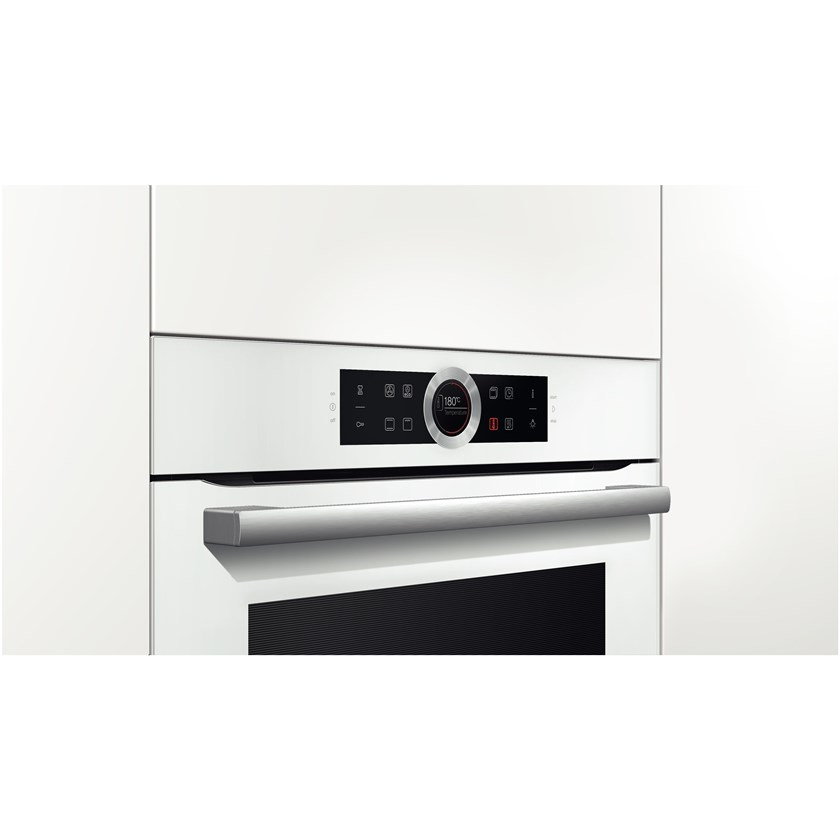 Bosch HBG634BW1. Grootte oven: Groot, Soort oven: Elektrische oven, Totale binnen capaciteit (ovens): 71 l. Apparaatplaatsing: Ingebouwd, Kleur van het product: Wit, Soort bediening: Touch. Soort klok: Elektronisch. Energie-efficiëntieklasse: A+, Energieverbruik (conventioneel): 0,87 kWu, Energieverbruik (geforceerde convectie): 0,69 kWu. Soort lamp: Halogeen