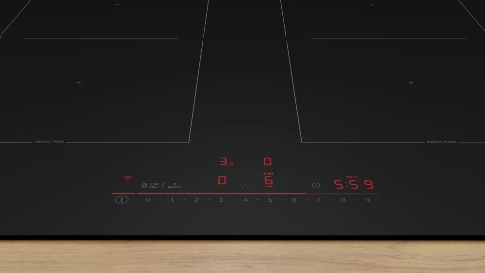 5x minder zichtbare krassennnOntdek onze Mat Design kookplaten, waarin design en functionaliteit samenkomen. De matzwarte carbonafwerking versterkt de chique uitstraling van je keuken. Met 5x minder zichtbare krassen en een minimale zichtbaarheid van vingerafdrukken en strepen — vergeleken met standaard glas-keramische oppervlakken — behouden onze kookplaten hun smetteloze uitstraling. Zo zijn ze een opvallend middelpunt in je keuken.nnEenvoudige bediening van de kookplaat.nnRaak je soms het overzicht kwijt over de instellingen van je kookplaat? Dankzij het eenvoudige bedieningspaneel en de ondersteunende lichtlijn kun je met DirectSelect de kookzones selecteren en het gewenste vermogensniveau instellen – direct, snel en eenvoudig.nnZelfs voor je grootste pannen heb je ruimte.nnEen grote stoofpan of braadslede op je inductiekookplaat? Met CombiZone combineer je moeiteloos twee ronde kookzones om het benodigde oppervlak te verwarmen, zodat je altijd genoeg ruimte hebt voor zelfs de grootste pannen.nnEenvoudig de afzuigkap bedienen.nnRicht je nu op jouw manier van koken. De bijpassende afzuigkap wordt automatisch aangestuurd door de kookplaat en een aangesloten Home Connect-account. Op basis van een algoritme wordt het vermogen van de afzuigkap aangepast aan de instellingen van de kookplaat. De keuken is vrij van geuren en vocht en je hoeft nooit vingerafdrukken op de afzuigkap te verwijderen. Dat is de nieuwe makkelijke manier van koken.nnJouw kookplaat, jouw voorkeuren.nnEet jij je eitje graag elke dag perfect zachtgekookt? Perfectioneer je dagelijkse routine dankzij de persoonlijke instellingen op je kookplaat. Met de Favorieten knop kan je je favoriete combinaties van instellingen, zoals het vermogen en de timer, opslaan. Of je kunt de lampen van je bijhorende afzuigkap ermee bedienen. Verbind je afzuigkap met je Home Connect-account en start elke dag in alle comfort.nnEenvoudig randloos design.nnDe randloze opbouwkookplaat is iets verhoogd om je kookruimte af te bakenen van het werkblad.nnSnel eten op tafel.nnVoor die dagen dat je in een handomdraai een makkelijke maaltijd op tafel wil zetten, biedt Power Boost uitkomst. Deze handige functie geeft je inductiekookplaat extra vermogen, zodat je eten nog sneller klaar is. Breng een grote pan water in een mum van tijd aan de kook: bijna 35% sneller dan op de hoogste temperatuurstand.nnNeem een pauze.nnVraagt iets anders soms je aandacht tijdens het koken? Stop meteen het verhitten van je kookplaat en blokkeer alle knoppen. Of er nu wordt aangebeld, een telefoontje binnenkomt of als je gewoon tussendoor het glasoppervlak wil schoonmaken. Kook gewoon verder na maximaal 10 minuten.nnQuick Start laat je geen seconde verliezen.nnDe Quick Start-functie ziet waar je je pannen plaatst en laat op het display meteen zien om welke kookzone het gaat. Je kunt hierdoor meteen een verwarmingsstand selecteren zonder enige vertraging op te lopen.nnOnthoud je instellingen.nnHeb je wel eens per ongeluk je kookplaat uitgeschakelt en ontdekt dat alle instellingen weg waren? Met Restart onthoudt de kookplaat de laatst gekozen instellingen en herstelt die als je de kookplaat binnen vier seconden weer aan zet.