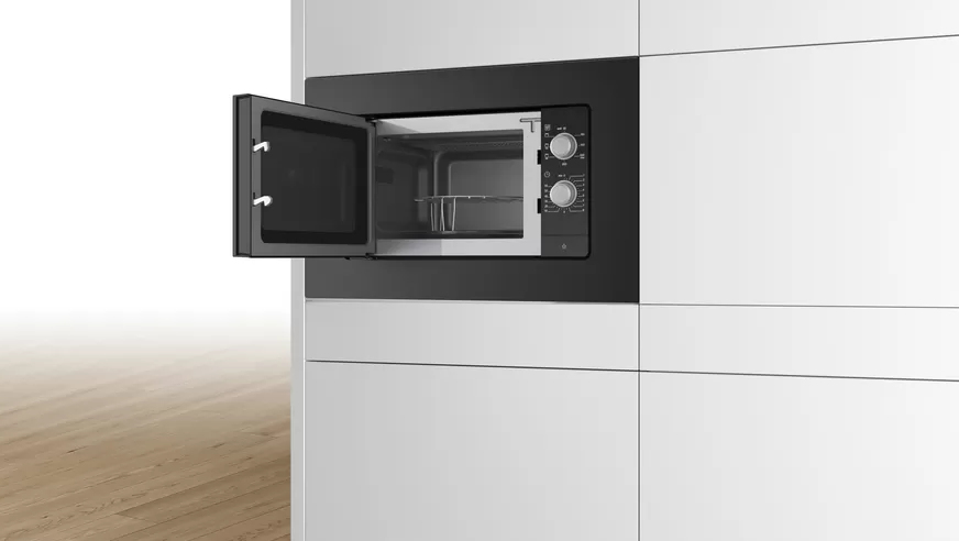 Bosch Serie 2 BEL620MB3. Apparaatplaatsing: Ingebouwd, Type product: Solo-magnetron, Inhoud (binnenkant): 20 l, Magnetronvermogen: 800 W, Soort bediening: Draaiknop, Kleur van het product: Zwart
