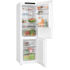Bosch Serie 4 KGN362WDF. Totale nettocapaciteit: 321 l, Klimaatklasse: SN-T, Geluidsniveau: 35 dB. Nettocapaciteit koelkast: 218 l, No Frost (koelkast), Multi-luchtwegsysteem (koelkast), Aantal planken koelkast: 3, Aantal groente lades: 1. Nettocapaciteit vriezer: 103 l, Vriescapaciteit: 9,5 kg/24u, No Frost (vriezer). Vers zone compartiment. Energie-efficiëntieklasse: D, Jaarlijks energieverbruik: 199 kWu. Kleur van het product: Wit