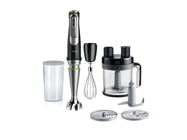 Braun MultiQuick 9 MQ 9175 XL. Soort: Staafmixer, Kleur van het product: Zwart, Roestvrijstaal, Snoerlengte: 1,2 m. Inhoud bak/kan: 0,6 l, Snelheidsregelaar type: Traploos, Soort bediening: Knoppen. Materiaal mes: Roestvrijstaal. Vermogen: 1200 W. Aantal kopjes: 1 stuk(s)