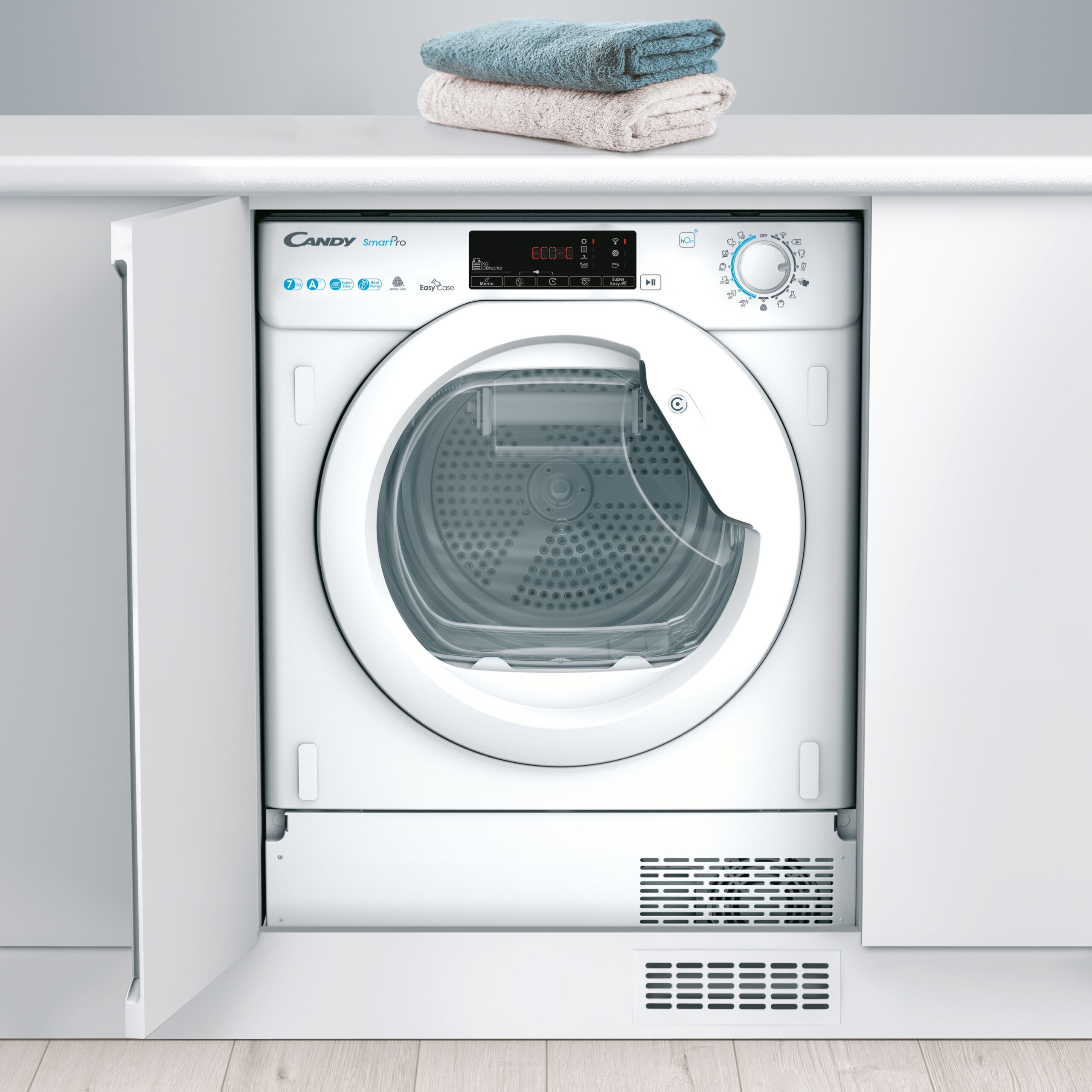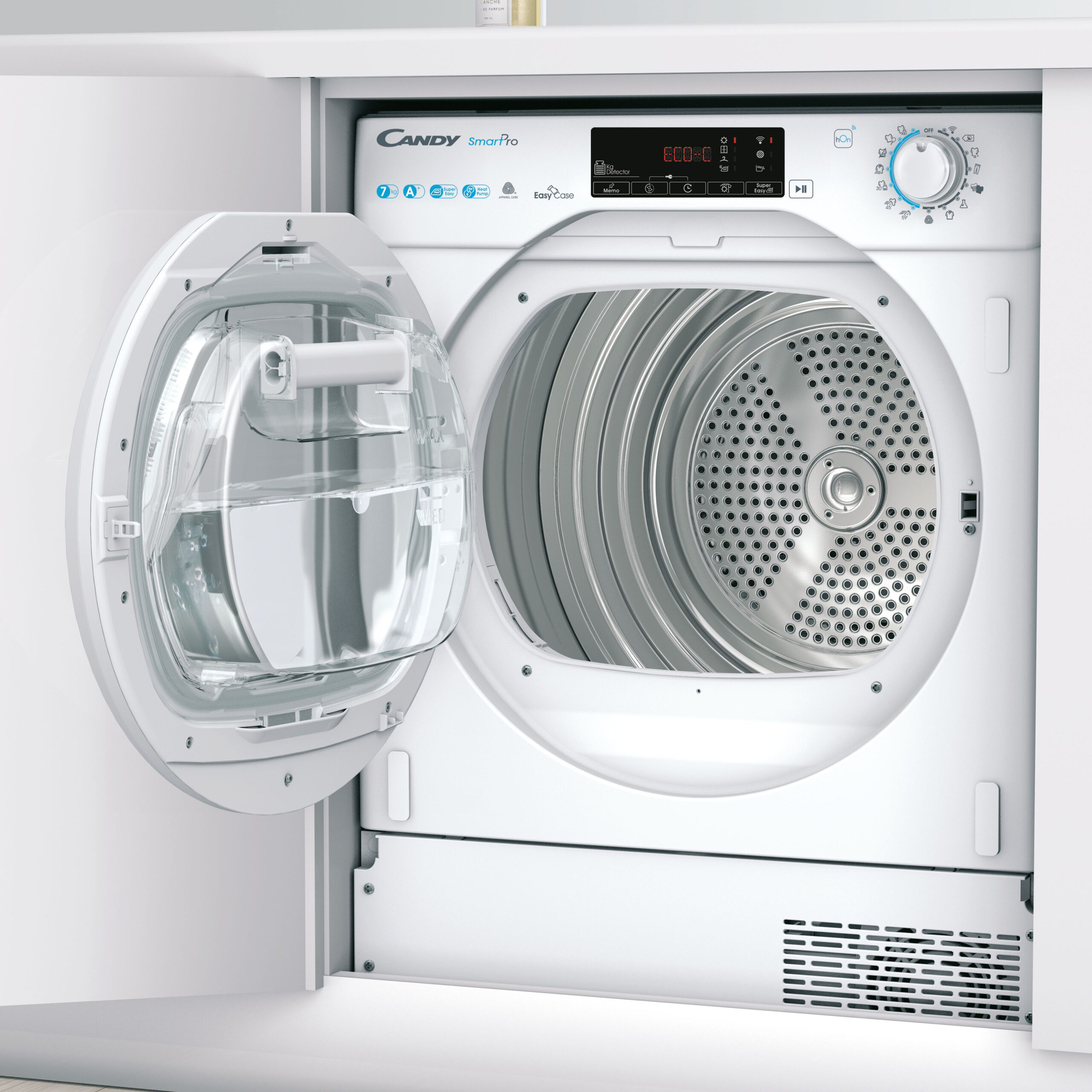 Candy Smart Pro BCTD H7A1TE-S, Ingebouwd, Voorbelading, Warmtepomp, Wit, Draaiknop, Touch, Links
