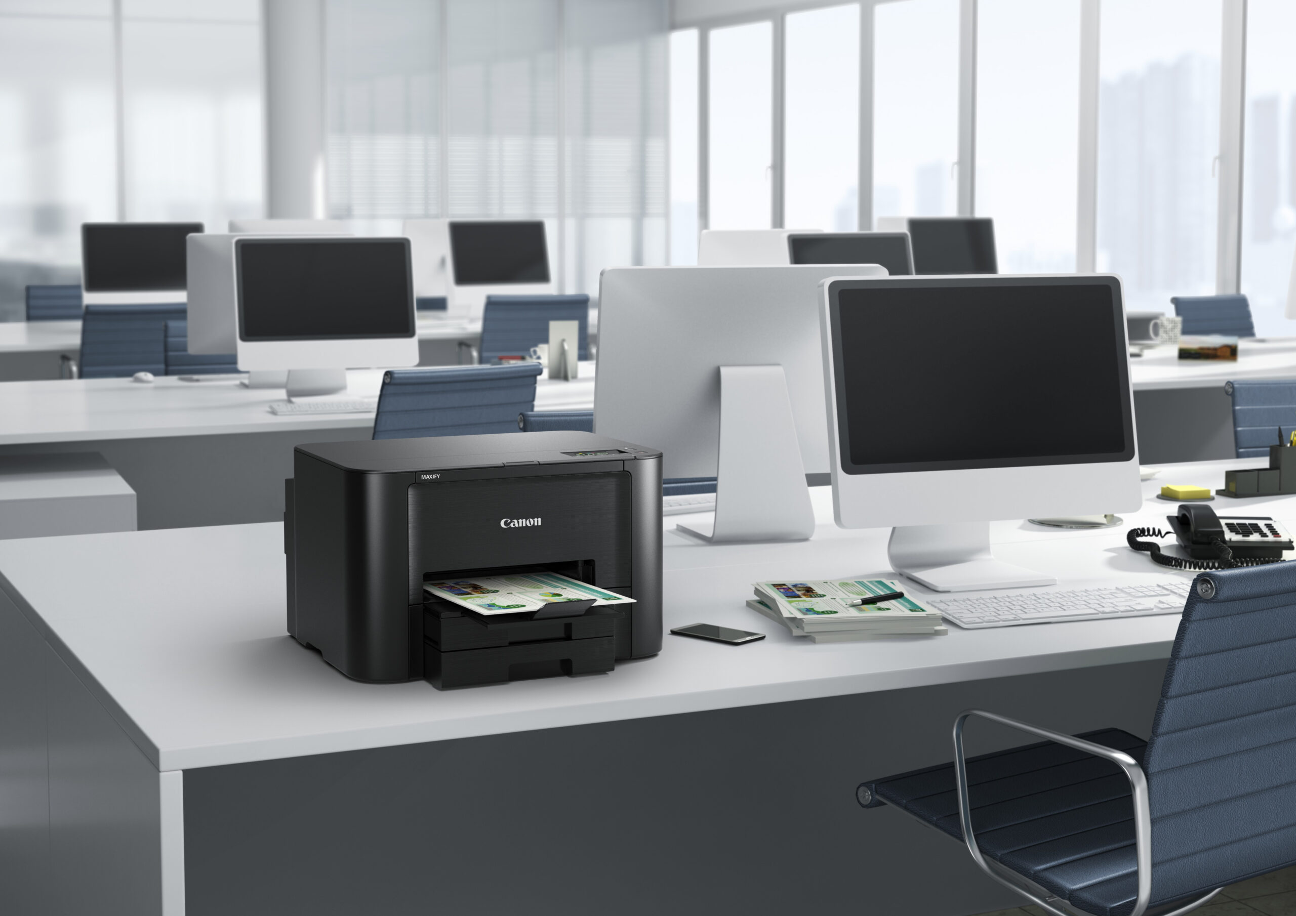 Ontworpen voor productiviteit, prestaties en betrouwbaarheid. Snel printen met 24 ipm in zwart-wit en 15,5 ipm in kleur, met een volume van 2500 pagina’s, lage operationele kosten, plus Wi-Fi – ideaal voor kleine kantoren.nn- Snel printen met 24 ipm in zwart-wit, 15,5 ipm in kleurn- Wi-Fi- en LAN-connectiviteitn- Printen vanuit populaire cloudservicesn- Laag inktverbruik: 2500 pagina’s in zwart-wit/1500 pagina’s in kleurn- Papiercapaciteit van 500 vel voor hoge productiviteitnnEen printer voor intensief gebruik in drukke kantorennEen kleuren-inkjetprinter die dankzij de snelheid, capaciteit en zuinigheid een essentieel onderdeel vormt van elk klein kantoor. De Canon MAXIFY iB4150 heeft een grote papierlade van 500 vel en produceert prints met een uitzonderlijke kwaliteit, levendige kleuren en scherpe tekst, dankzij de markeerstiftbestendige en veegvaste DRHD-inkten. De Canon MAXIFY iB4150 print A4-pagina’s razendsnel met 24 ipm in zwart-wit en 15,5 ipm in kleur. Bovendien is de eerste pagina (FPOT) beschikbaar in slechts 6 seconden.nnZeer zuinignDe Canon MAXIFY iB4150 is ontworpen om de operationele kosten te verminderen, van het lage energieverbruik tot de inktcartridges met groot volume en de afzonderlijk te vervangen kleurencartridge. De zwarte cartridges hebben een ISO-paginacapaciteit van 2500 pagina’s en de kleurencartridges van 1500 pagina’s, waardoor je ze niet vaak hoeft te vervangen. Bovendien is er ook een multipack met 4 kleuren beschikbaar voor extra kostenbesparend printen.nnVeelzijdige kantoorprinternMet de Canon MAXIFY iB4150 ben je nog productiever. Dankzij het dubbelzijdig printen en de ondersteuning voor verschillende papierformaten en -typen, van gewoon A4-papier tot labels, enveloppen en fotopapier, worden dagelijkse werkzaamheden heel eenvoudig. De Canon MAXIFY iB4150 beschikt over eenvoudig te gebruiken functies en is speciaal ontworpen voor printtaken op kantoor.nnIn de cloud of op mobielnDankzij de ondersteuning voor Google Cloud Print, Apple AirPrint (iOS), Mopria en de Canon PRINT-app kun je snel en eenvoudig printen vanaf mobiele apparaten. Je kunt zelfs printen vanuit veelgebruikte cloudservices, zoals Google Drive, Dropbox, Evernote, OneNote en OneDrive. En met de ingebouwde Access Point-modus kunnen gebruikers van smartphones en tablets zonder Wi-Fi-netwerk van de printer gebruik maken.nnEenvoudige beheer- en controlefunctiesnDe Canon-MAXIFY iB4150 biedt een ongelooflijke printkwaliteit en nog meer productiviteit voor kleine kantooromgevingen. Tegelijkertijd is het beheer, het behoud en de controle heel eenvoudig dankzij de geavanceerde beheerdersfuncties. Systeembeheerders hebben de beschikking over verschillende opties om de printer snel en eenvoudig te configureren en bepaalde handelingen te verbieden.nnSNMP-netwerkintegratienDe Simple Network Management Protocol (SNMP)-compatibiliteit van de Canon-MAXIFY iB4150 zorgt ervoor dat het heel eenvoudig is om de printer in een bestaand kantoornetwerk te integreren. SNMP maakt een hele reeks aan beheer- en controlefuncties mogelijk, waaronder inktniveau, errorstatus en paginatelling.