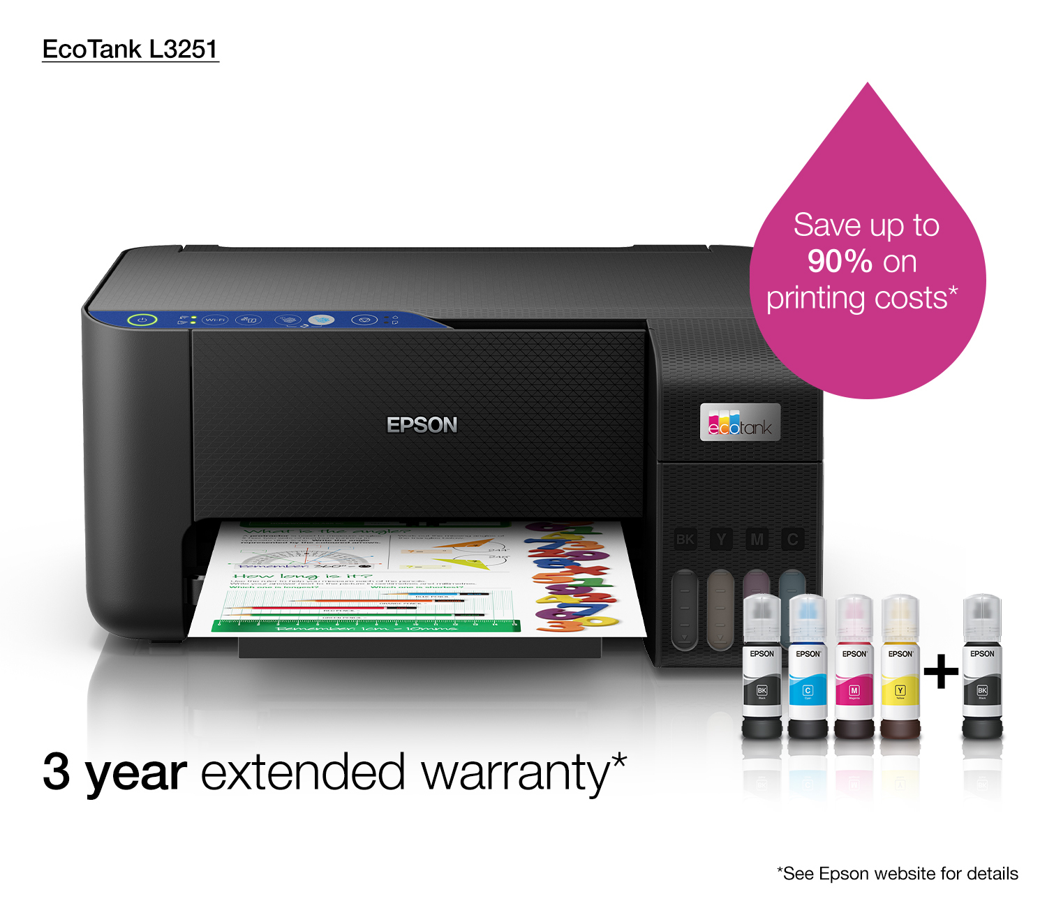 Epson EcoTank L3251, Inkjet, Afdrukken in kleur, 5760 x 1440 DPI, A4, Direct printen, Zwart