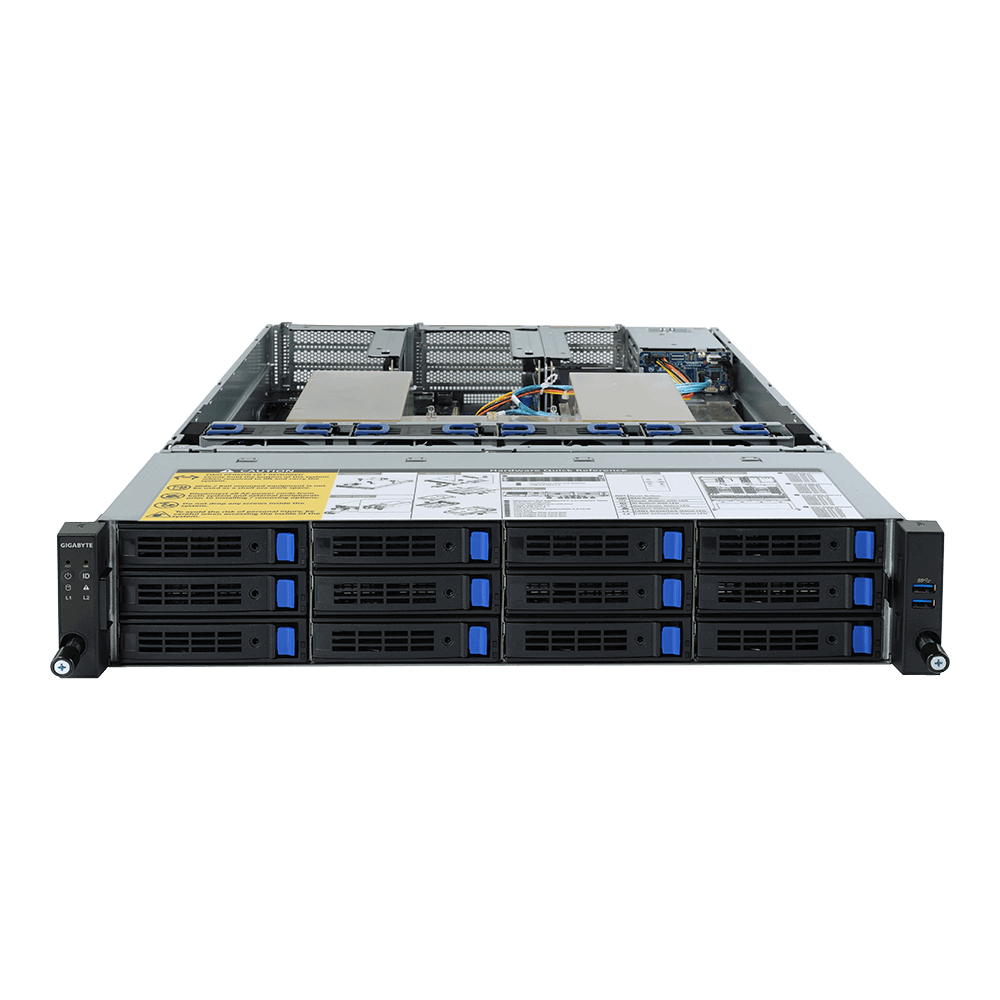 GIGABYTE R282-Z90. Processor socket: Socket SP3, Processorfamilie: AMD, Compatibele processors: AMD EPYC. Ondersteunde geheugen types: DDR4-SDRAM, Maximum intern geheugen: 128 GB, Ondersteunende RDIMM klok snelheden: 2933,3200 MHz. Opslagschijf afmetingen ondersteund: 2.5,3.5″, Ondersteunde types opslag-drives: HDD & SSD, Ondersteunde opslagstationinterfaces: SATA III, Serial Attached SCSI (SAS). On-board graphics adapter model: Aspeed AST2500. Ethernet interface type: Fast Ethernet, Gigabit Ethernet, Ethernet LAN, data-overdrachtsnelheden: 10,100,1000 Mbit/s, LAN controller: Intel® I350-AM2