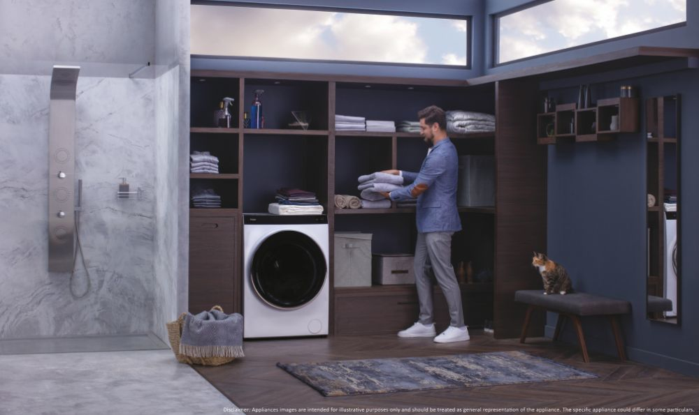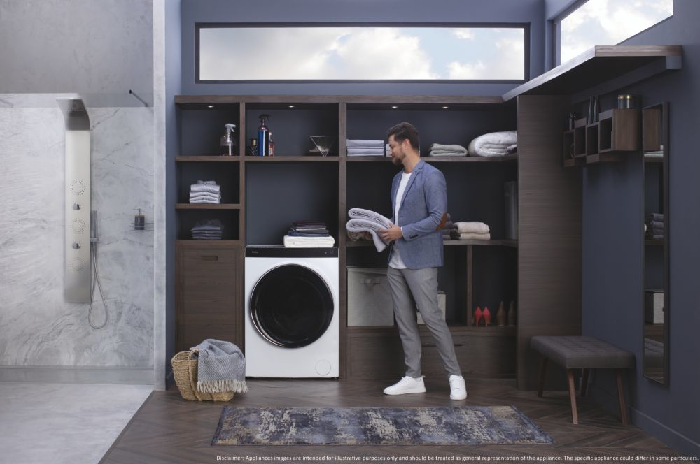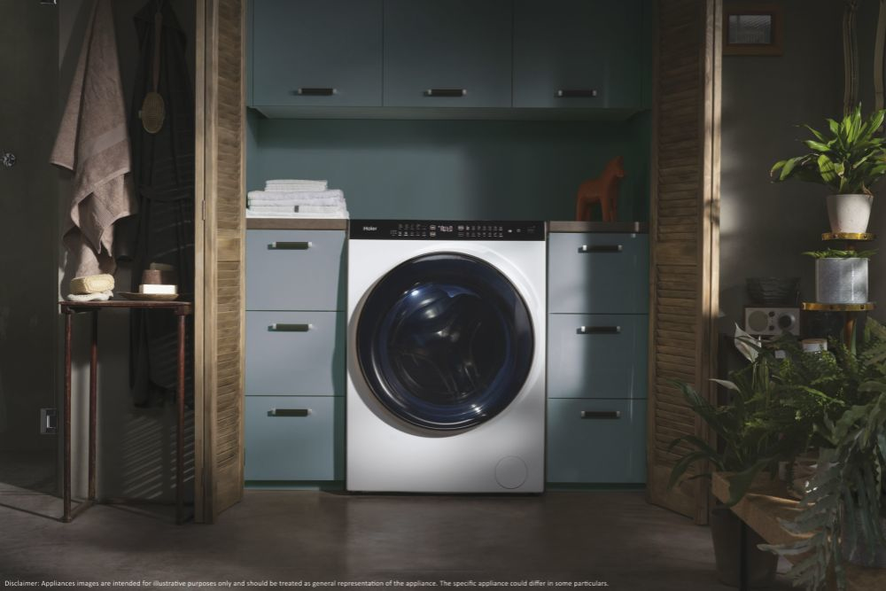 Haier Super Drum Series 9 HWD100-BD1499U1N, Voorbelading, Vrijstaand, Wit, Links, Zwart, Touch