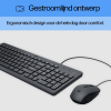 HP 150 muis en toetsenbord met kabel. Toetsenbord formaat: Volledige grootte (100%), Connectiviteitstechnologie: Bedraad, Aansluiting: USB, Toetsenbord toetsschakelaar: Membraan keyswitch, Toetsenbordindeling: QWERTY. Snoerlengte: 1 m. Aanbevolen gebruik: Universeel. Kleur van het product: Zwart. Inclusief muis