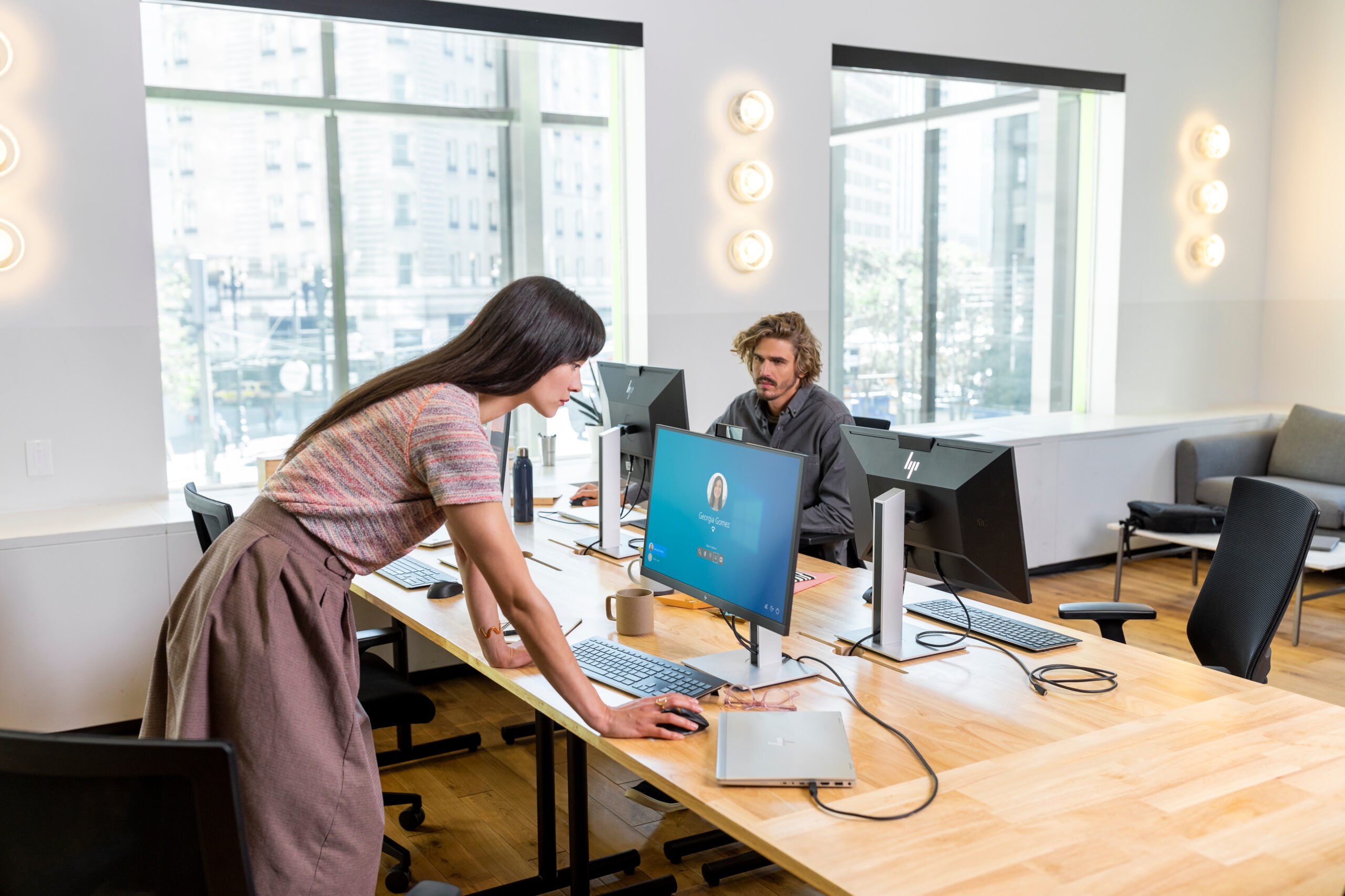 Je kunt met plezier aan je bureau werken en IT op afstand je HP apparaten laten beheren vanaf elke plek in het netwerk[2,3] met de gestroomlijnde USB-C®[1] connectiviteit van de HP E24d G4 FHD USB-C Docking Monitor.