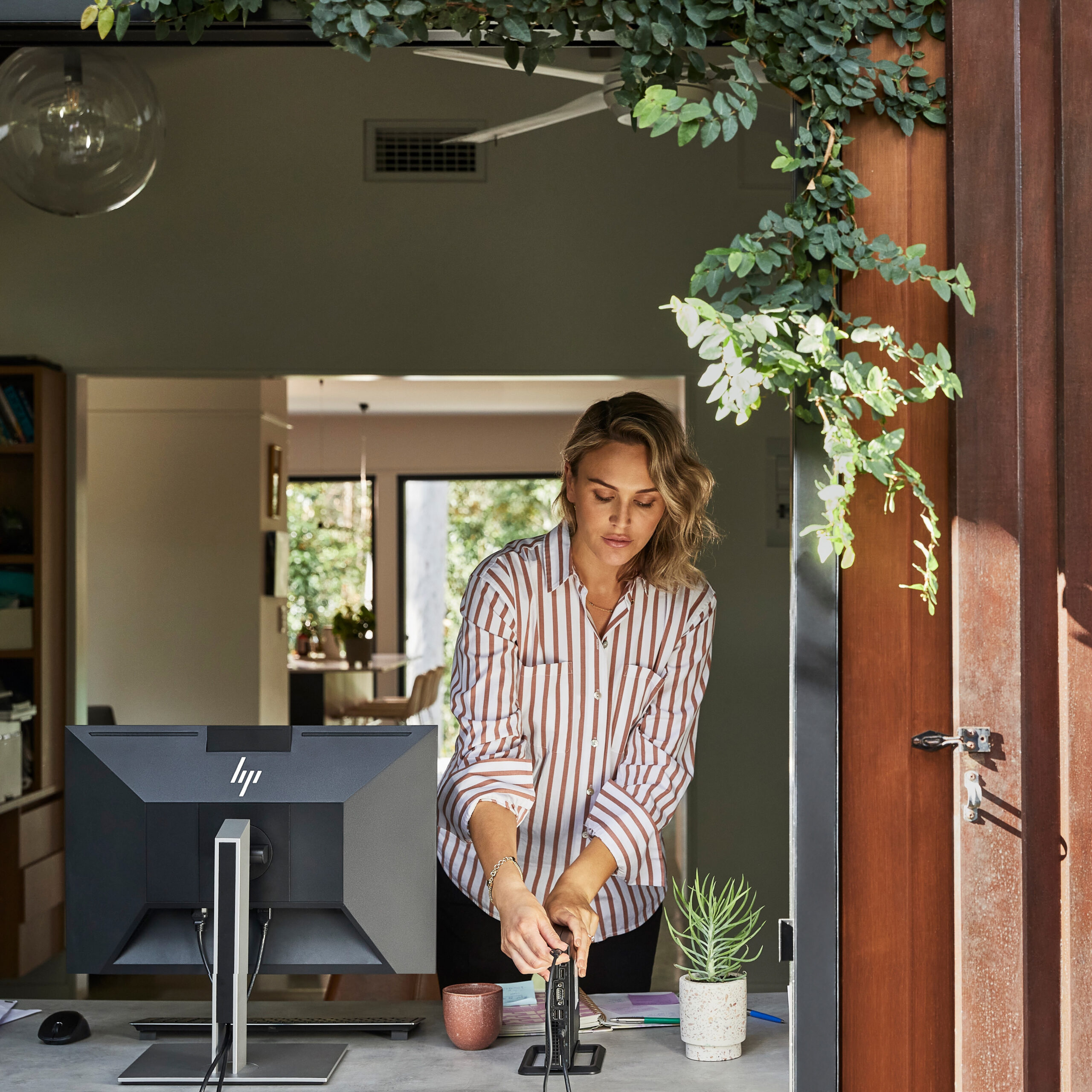 Een desktop die met je mee reistnDe HP Elite Mini 800 desktop is krachtig genoeg om ingewikkelde presentaties op te zetten, eindeloze reeksen cijfers te verwerken en snel de mooiste content te creëren. Dankzij de krachtige Intel®-processor[2], responsieve videokaart en slimme gebruiksmogelijkheden, is dit een compacte pc voor grote opdrachten in kleine ruimtes.