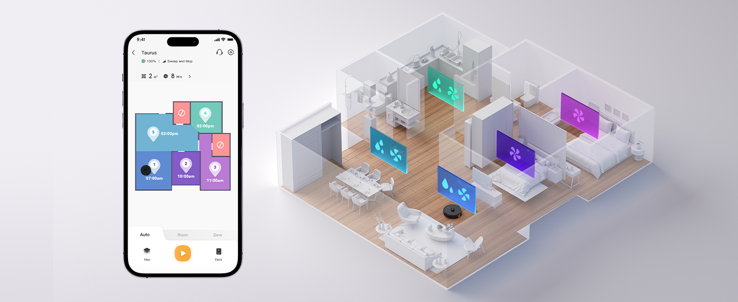 RV1 robotstofzuigernDe ideale schoonmaakhulpnn4.500 Pa zuigkrachtnnDe RV1 beschikt over een krachtige zuigkracht van 4.500 Pa. In combinatie met de v-vorminge rolborstel zuigt de stofzuiger effectief vuil op en verzamelt dit in de opvangbak. nnTot 110 minuten stofzuigennnDe RV1 is uitgerust met een grote 3200 mAh batterij die tot 110 minuten stofzuigen mogelijk maakt. nnStofzuigen en dweilen in éénn- 300 ml stofbakn- 250 ml water reservoirn- DweildoekhoudernnRazendsnelle mapping functie door LIDAR sensornnDe mapping sensor draait 6 keer per seconde rond en meet de afstand tot 2.016 verschillende punten in de kamer om een accurate kaart op te bouwen.nnAangedreven door IMOU SENSE® geavanceerde AI technologiennIMOU SENSE® is een AI-algoritme dat inhouse is ontwikkeld door het merk Imou. Dankzij deze geavanceerde technologie is de robotstofzuiger in staat tot effectieve routing en kan het apparaat worden ingesteld naar eigen wens door bijvoorbeeld schoonmaakschema’s en no-go zones in te stellen. nnOpslag van 3 kaarten / verdiepingennnDe RV1 heeft tot 3 ingebouwde kaarten, zodat de stofzuiger eenvoudig van verdieping kan worden gewisseld, zonder opnieuw de indeling te moeten herkennen. nnAutomatische boost-functie voor tapijtnnDe RV1 herkent tapijtmateriaal en verhoogt de zuigkracht tot maximaal bij tapijt als ondergrond.n nVolledige controle in de Imou Life appnnStofzuigen kan altijd en overal worden geactiveerd en worden ingepland in de Imou Life app. Ook stel je no-go zones en virtuele muren in om de stofzuiger optimaal af te stellen op de woning.nnAutomatische oplaadfunctiennDe RV1 begint automatisch een route terug te plannen naar het basisstation wanneer de batterij bijna leeg is en registreert de huidige voortgang; wanneer het opladen is voltooid, gaat de RV1 verder met reinigen vanaf het laatst opgeslagen punt.