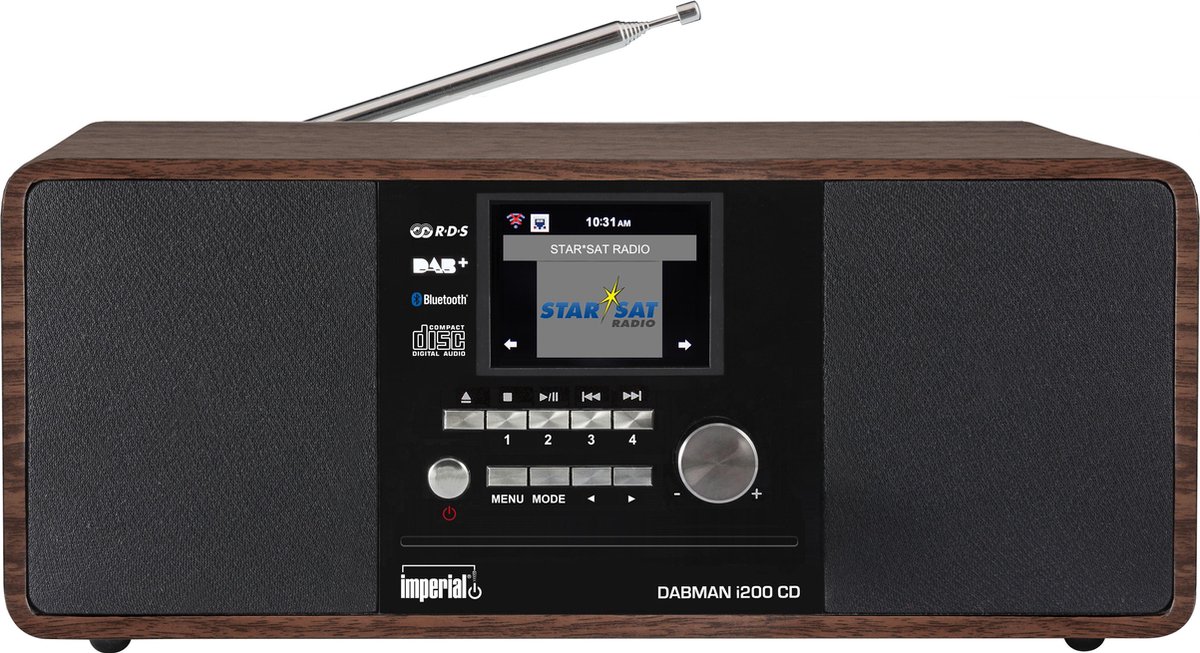 De IMPERIAL DABMAN i200 CD combineert de functies van een DAB + en FM-radio met de enorme mogelijkheden van een internetradio en audio mediaplayer. Daarbuiten beschikt deze hybride radio ook over Bluetooth functionaliteit (voor het streamen vanaf mobiele apparaten zoals een smartphone of tablet) als over een geintegreerde CD player voor het weergeven van uw favoriete CD´s.