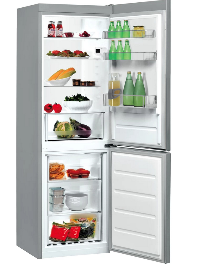 Indesit LI7 SN1E X. Totale nettocapaciteit: 295 l. Deurscharnieren: Rechts. Klimaatklasse: SN-ST, Geluidsniveau: 40 dB. Nettocapaciteit koelkast: 197 l, Aantal planken koelkast: 4, Aantal groente lades: 1. Nettocapaciteit vriezer: 98 l, Vriescapaciteit: 6,5 kg/24u. Energie-efficiëntieklasse: F, Jaarlijks energieverbruik: 301 kWu. Kleur van het product: Roestvrijstaal