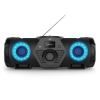 Als het om de prestaties van de boomblaster gaat, draait het allemaal om vermogen en luidsprekergrootte. Met zijn krachtige 60 watt versterker en twee 16 cm subwoofers en twee 10 cm full range speakers biedt deze Boomblaster beide en levert hij een indrukwekkend en krachtig geluid! Alle luidsprekers worden beschermd door stevige metalen roosters en de subwoofer wordt verder beschermd door het handvat aan de zijkant van de Boomblaster.