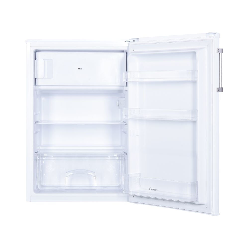 Deze compacte Candy koelkast heeft een grote stijl en functionaliteit in een klein formaat. Het slanke witte ontwerp past naadloos in elke keukeninrichting en biedt 109 liter koelcapaciteit. De omkeerbare deur zwaait open en onthult veel schappen voor het organiseren van snacks, drankjes en restjes. De energiezuinige F-classificatie helpt de energiekosten laag te houden, terwijl de verstelbare voetjes het apparaat waterpas zetten voor optimale prestaties. Bovendien zorgt de fluisterstille werking van 40 decibel ervoor dat deze koelkast stilletjes op de achtergrond werkt, zodat jij je kunt concentreren op wat belangrijk is. Klein maar krachtig, deze Candy koelkast biedt de opslag die je nodig hebt in een ontwerp dat naadloos integreert.