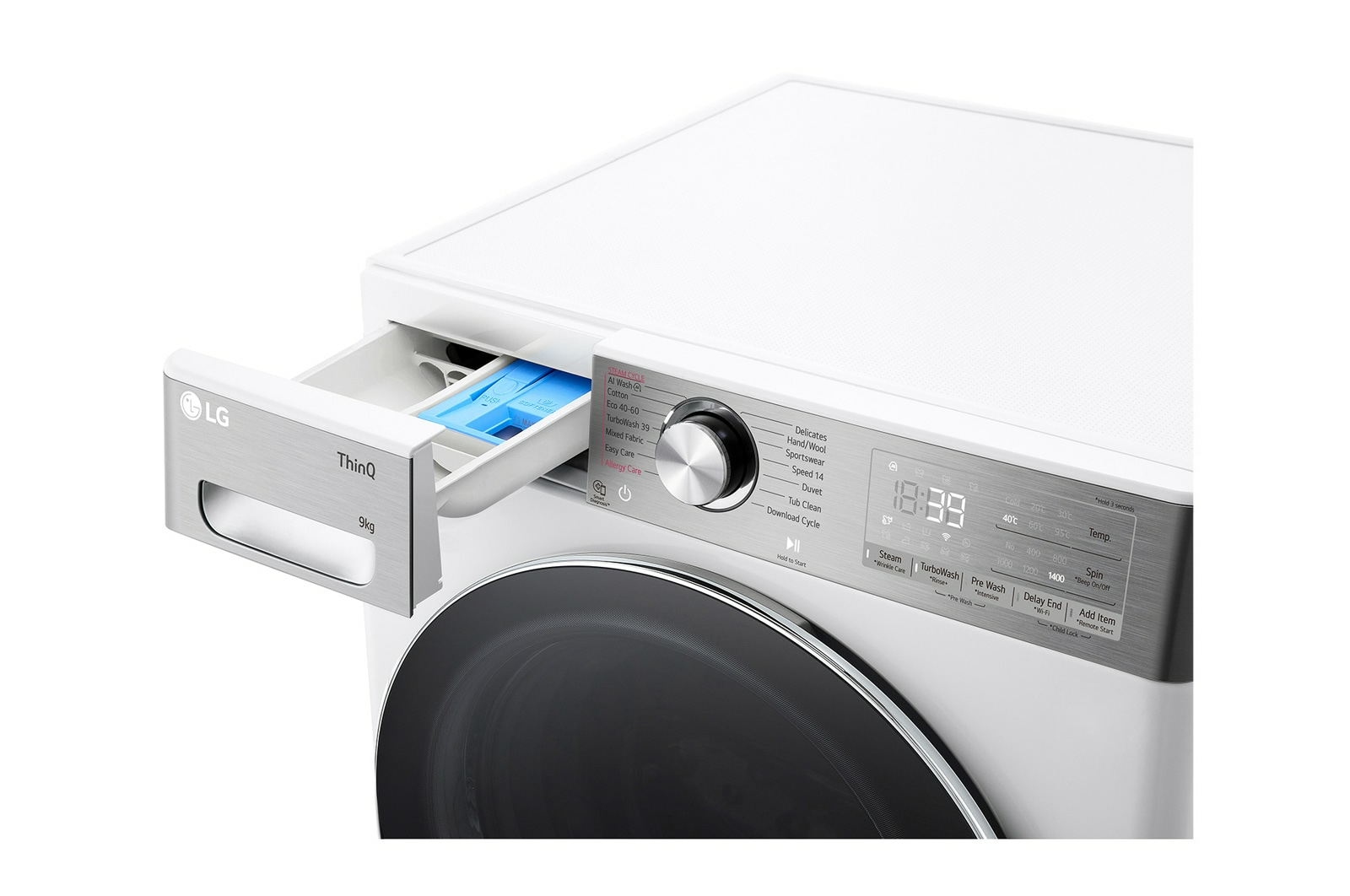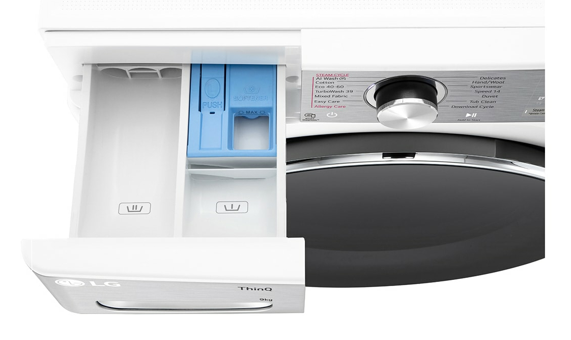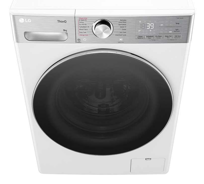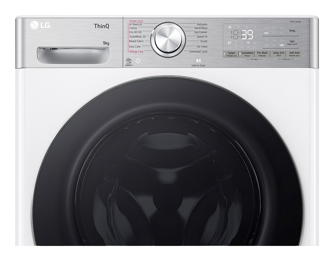 LG F4WR909P3W, Voorbelading, 9 kg, B, 71 dB, 1400 RPM, A