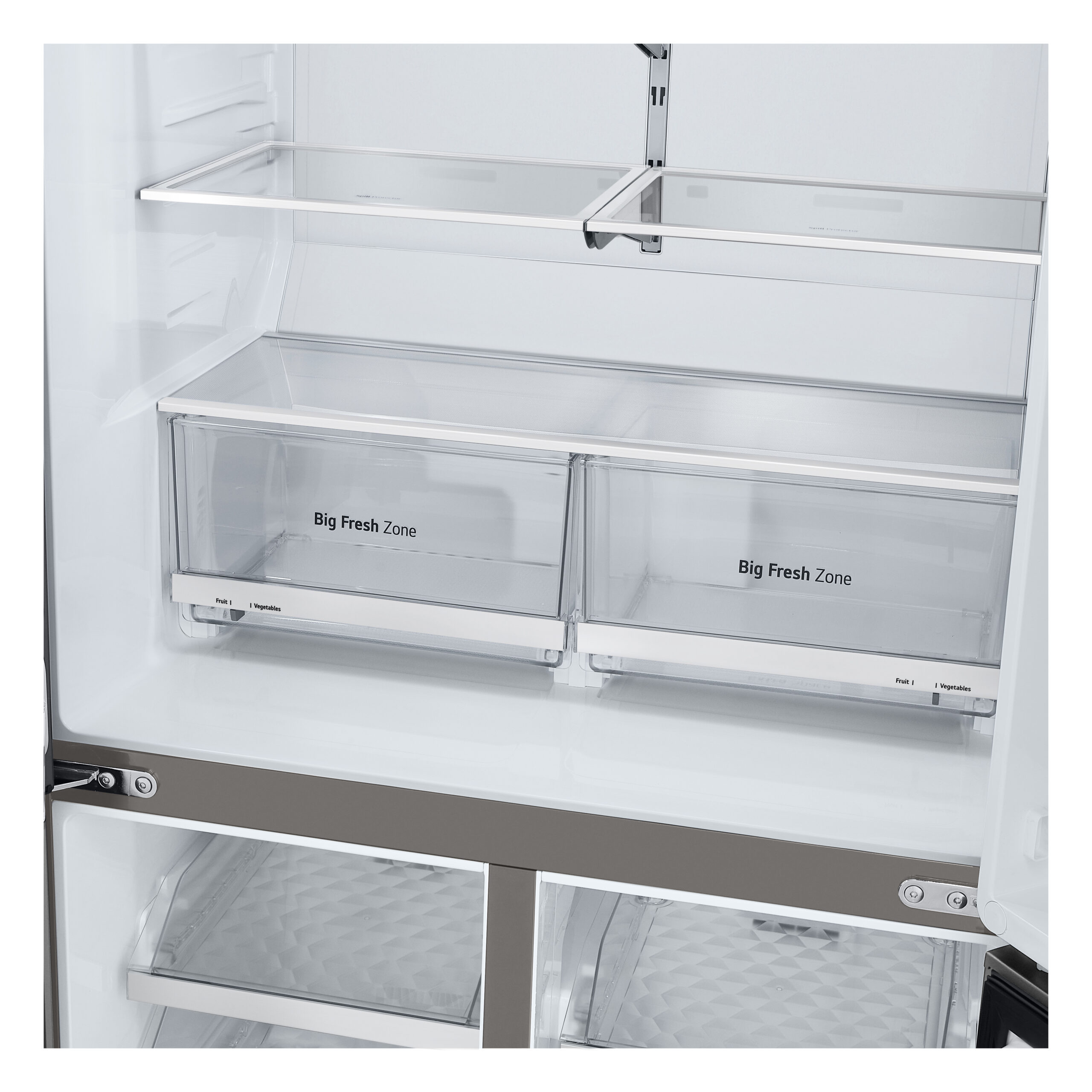 LG GML960PYFE. Apparaatplaatsing: Vrijstaand, Productontwerp: Multideur, Kleur van het product: Zilver. Totale nettocapaciteit: 637 l, Klimaatklasse: T, Geluidsemissieklasse: C. Nettocapaciteit koelkast: 363 l, Brutocapaciteit koelkast: 385 l, Soort lamp: LED. Nettocapaciteit vriezer: 274 l, Vriezer positie: Onder, Vriescapaciteit: 11,2 kg/24u. Bedieningsapps ondersteund: LG ThinQ