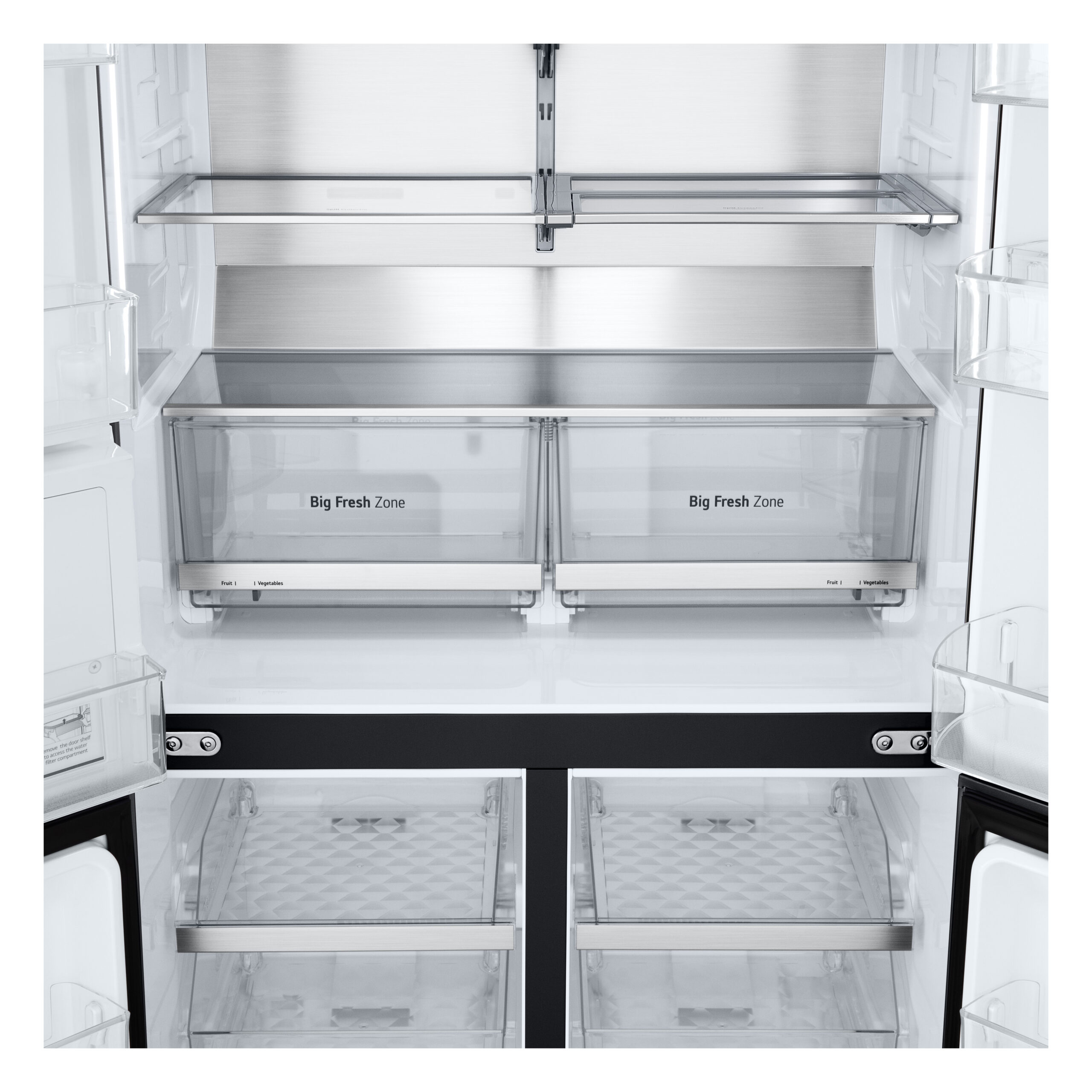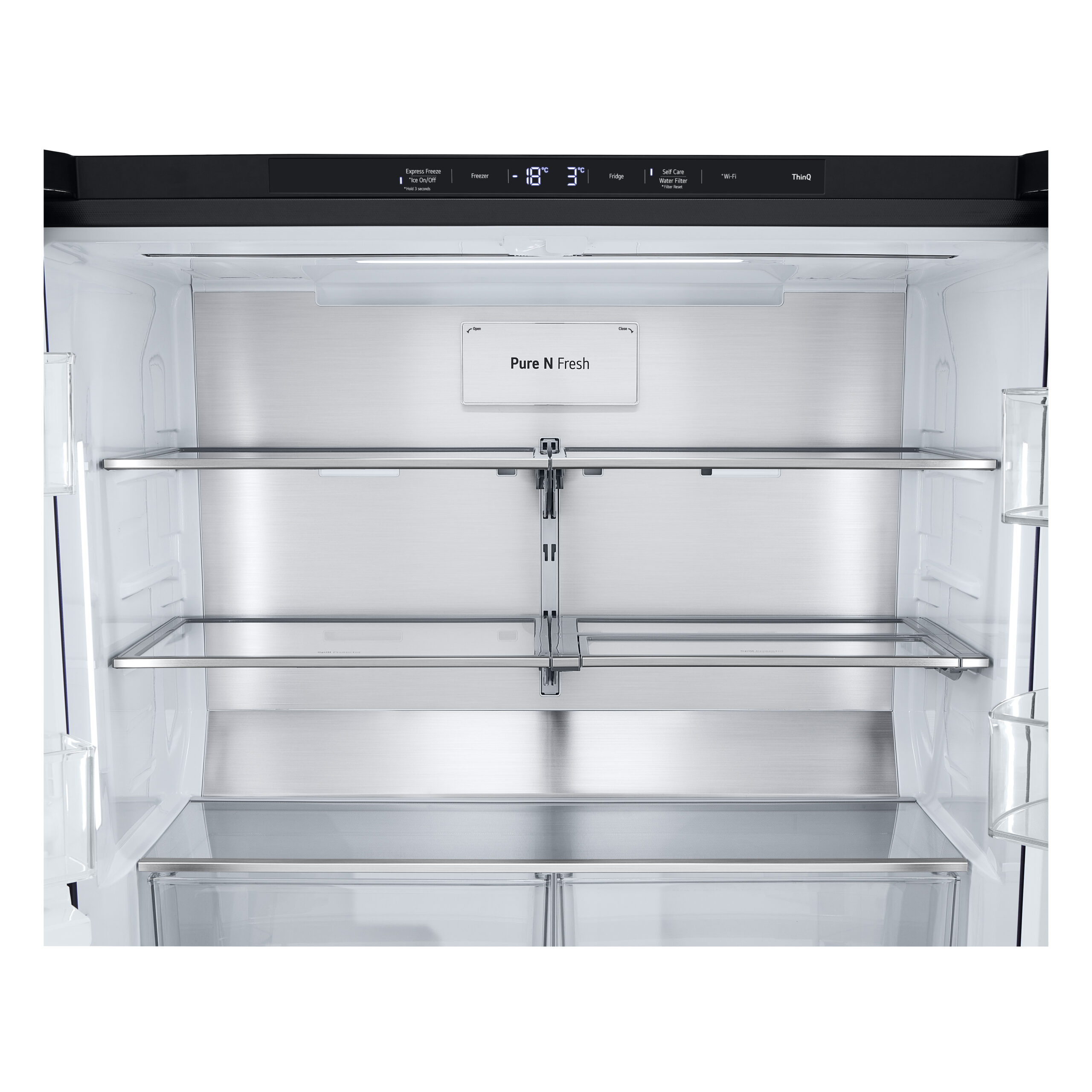 LG InstaView GMG960EVJE. Apparaatplaatsing: Vrijstaand, Productontwerp: Multideur, Kleur van het product: Zwart. Totale nettocapaciteit: 638 l, Klimaatklasse: T, Geluidsemissieklasse: C. Nettocapaciteit koelkast: 364 l, Soort lamp: LED. Nettocapaciteit vriezer: 274 l, Vriezer positie: Onder, Vriescapaciteit: 11 kg/24u. Bedieningsapps ondersteund: LG ThinQ