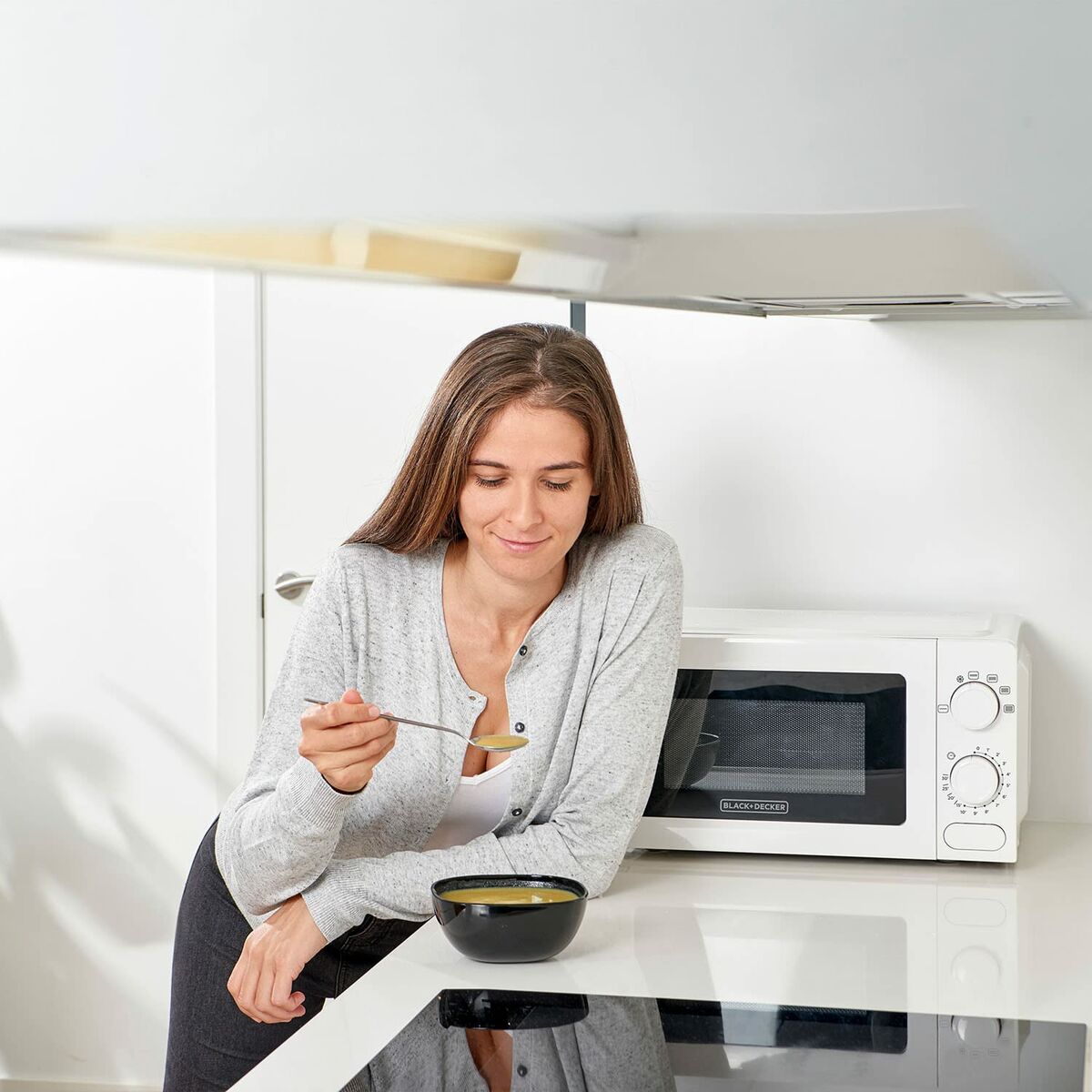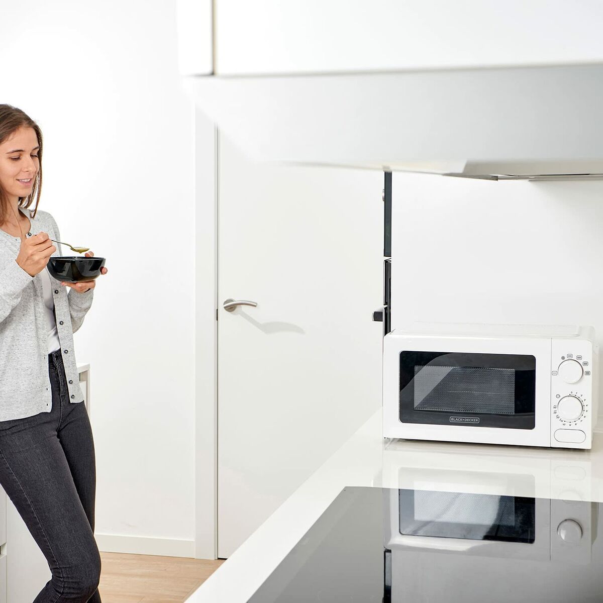 Deze magnetron is klein maar krachtig, met 700 watt vermogen in een compacte behuizing van 20 liter. De slanke zwarte buitenkant past moeiteloos in elke moderne keuken, terwijl de binnenverlichting het makkelijk maakt om te zien wat er binnen wordt bereid. Een eenvoudige draaiknop en 30-minuten timer maken de bediening een fluitje van een cent, zodat je in een handomdraai restjes kunt opwarmen en popcorn kunt maken. De bijgeleverde handleiding helpt je stap voor stap aan de slag te gaan en dankzij het eenvoudig schoon te maken interieur veeg je morsen in een handomdraai weg. Deze magnetron is perfect voor studentenkamers, kleine appartementen of keukenbladen met beperkte ruimte, en biedt het essentiële in een stijlvolle verpakking voor een betaalbare prijs. Zet je favoriete snacks erin, stel de timer in en laat deze magnetron zijn werk doen.
