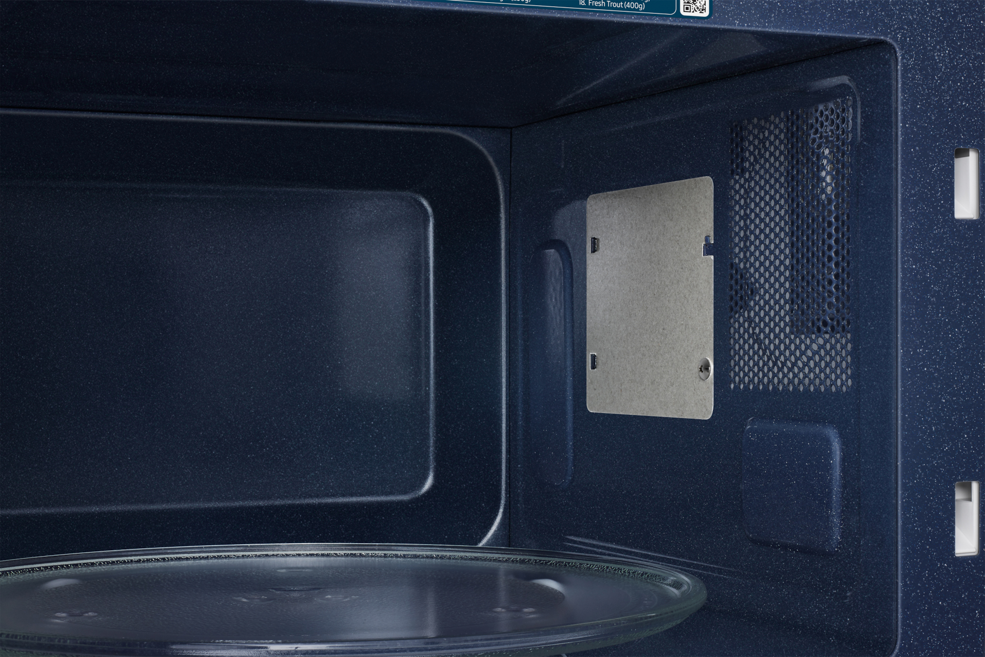 De 15 handige kookmenu’s en de ontdooioptie vereenvoudigen de maaltijd, terwijl het ruime draaiplateau van 318 mm gemakkelijk grotere borden kan herbergen. Het intuïtieve witte led-display en het tactiele bedieningspaneel maken de bediening een fluitje van een cent.