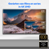 Entertainment op zijn bestnnMet deze UHD Smart TV zie je gewoon meer, want de QLED-technologie zorgt voor bijzonder levendige kleuren met een hoge helderheidswaarde. Hierdoor kun je je favoriete content op een geheel nieuwe manier ervaren op het grote schermdiagonaal van 43 inch (108 cm) – of het nu gaat om series, films, sportuitzendingen of videogames. De TV ondersteunt ook HDR en Dolby Vision® voor een bijzonder contrastrijke weergave. Net zo briljant: Je bent je eigen programmadirecteur en hebt de flexibiliteit om te bepalen wat er op is. Met drie HDMI-ingangen kun je verschillende eindapparaten aansluiten, van settopboxen tot spelconsoles. Je kunt live tv kijken zonder extra Computer via de ingebouwde drievoudige tuner. Je kunt de UHD TV aansluiten op het internet via Wi-Fi of Ethernet kabel en direct toegang krijgen tot apps zoals de streamingdiensten Netflix en Amazon Prime Video. Je kunt je eigen muziek, foto’s en video’s afspelen via de geïntegreerde mediaspeler. Dit is thuisbioscoop met extra gemak!nnKrijg toegang tot meer dan 400.000 films en shows, speel muziek en games, zet inhoud van elk apparaat over naar je tv en voeg de apps toe die je het meest gebruikt – allemaal met Android TV. Je kunt ook je stem gebruiken om programma’s te zoeken, je tv te bedienen, je dag te plannen en nog veel meer. Vraag maar aan Google.nnAndroid TV™nnMet jouw Android TV haal je het maximale entertainment uit jouw TV. Je hebt rechtstreeks toegang tot meer dan 400.000 films en series die je kunt bekijken via bekende streaming platforms zoals Netflix en Amazon Prime Video. Om jouw favorieten sneller terug te vinden, kun je gemakkelijk jouw eigen startscherm maken. Je kunt ook gemakkelijk al jouw favoriete apps downloaden via Google Play.nnSpraakgestuurde afstandsbediening met Google AssistentnnJe hebt jouw entertainmentprogramma nog nooit zo handig geregeld! Met de microfoon die in de afstandsbediening is geïntegreerd, kun je spraakopdrachten gebruiken om gemakkelijk jouw favoriete programma’s te starten of de nieuwste films op te zoeken. Druk gewoon op de microfoonknop om direct naar jouw favoriete apps te gaan. De geïntegreerde Google Assistent maakt het mogelijk!nnChromecast ingebouwd™nnMet Chromecast ingebouwd, kun je alle inhoud van jouw smartphone of tablet in een oogwenk overbrengen naar het TV-scherm. Dit werkt zowel voor film- of spelletjesavonden als voor het tonen van de laatste vakantiefoto’s.nnQLED-beeldschermnnQLED-technologie maakt gebruik van quantum dots om jou een indrukwekkend scherm met levendige kleuren te geven. De technologie maakt de weergave van deze TV bijzonder contrastrijk en zorgt voor een breder kleurenpalet dan bij klassieke schermen. Voor jou betekent dit meer detail, levendigere beelden en beter amusement.nnMeer details zichtbaar met Micro Dimming & MEMCnnMotion Estimation and Motion Compensation” – of kortweg MEMC – tilt je thuisbioscoop naar een hoger niveau. Deze functie garandeert een vloeiend beeld, zelfs in snelle scènes. Ervaar je favoriete content in een nieuwe kwaliteit. Micro Dimming maakt het mogelijk. Deze moderne technologie regelt de beeldweergave zodat deze perfect overeenkomt met de beelden die op dat moment worden weergegeven. Hierdoor geniet je van meer details en betere contrasten.nnLevensechte contrasten met HDR10nnDankzij het High Dynamic Range (HDR10) worden de kleuren en contrasten in een uitstekende kwaliteit weergegeven. Geniet van films en series die zo briljant zijn als nooit tevoren. Naast tal van online diensten zoals Amazon, Netflix en YouTube, ondersteunen Ultra-HD Blu-rays het afspelen van HDR.nnDolby Vision™ home cinema zoals het hoortnnBiedt spectaculaire kleuren, adembenemende contrasten en een briljant, levendig beeld vol details. De Dolby-standaard zorgt ervoor dat je films en series precies zo worden afgespeeld als de filmmakers hebben bedoeld. Zo kun je echte bioscoopmomenten beleven in je eigen woonkamer!nnBombastisch geluid met Dolby Atmos®nnDolby Atmos verbetert jouw thuisbioscoopervaring met een meeslepend gevoel alsof je midden in de actie zit en creëert op subtiele wijze een levensechte sfeer in rustigere scènes. Beleef films, series en games met geluid dat de hele kamer vult en jou vanuit alle richtingen bij de actie betrekt. Van de opwindende soundscape van een sportuitzending tot de stuwende muziek van de laatste Hollywood hits, een rijke bas en een briljante geluidskwaliteit vol details maken jouw home cinema perfect.nnAmazon Prime aan boordnnGeniet van het beste entertainment met één druk op de knop. Dankzij de ondersteuning in deze Smart TV voor de Amazon Prime app heb je toegang tot de uitgebreide bibliotheek van Amazon Prime Video’s met films en series, rechtstreeks op je TV! Je hoeft geen ontvanger of computer aan te sluiten, alleen maar te streamen!nnGebruik Netflix direct op de TVnnBekijk films en series direct op je TV met behulp van Netflix-streamingdiensten. Het is zeer eenvoudig en er is geen extra ontvanger of computer nodig om aan te sluiten.