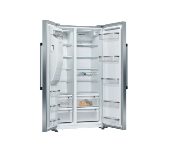 Neff KA3923IE0. Apparaatplaatsing: Vrijstaand, Productontwerp: Amerikaanse deur, Kleur van het product: Zwart, Grijs. Totale nettocapaciteit: 562 l, Klimaatklasse: SN-T, Geluidsemissieklasse: D. Nettocapaciteit koelkast: 371 l, Soort lamp: LED. Nettocapaciteit vriezer: 191 l, Vriezer positie: Ernaast, Vriescapaciteit: 13 kg/24u. Snoerlengte: 1,7 m