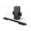 De krachtige draadloze subwoofer is ook zeer compact en kan handig zowel horizontaal of verticaal worden geplaatst zodat deze uit het zicht kan worden geplaatst. Ook wordt een wandsteun voor de kleine soundbar meegeleverd zodat deze aan de muur kan worden bevestigd.
