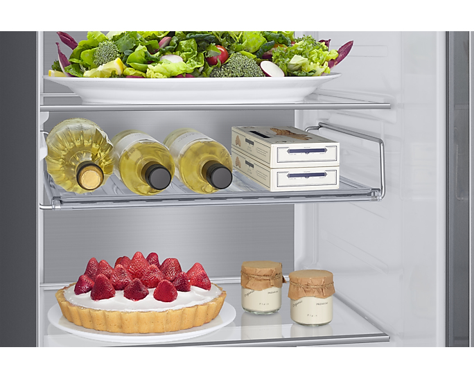 Deze Samsung Amerikaanse koelkast RS68A8842S9/EF heeft een unieke feature in vergelijking met andere Samsung Amerikaanse koelkasten. Dit model beschikt namelijk over een flexibel inzetbaar flessenplateau! Maak efficiënt gebruik van deze multifunctionele ruimte in je koelkast. Doordat dit flessenplateau is ontwerpen met een platte vorm dient dit plateau niet alleen als ruimte om je flessen op kwijt te kunnen, maar kan je er ook andere producten op kwijt zoals een pizzadoos of eieren. Zo voorkom je loze ruimte en is het plateau dus veelzijdiger als een regulier flessenrek.