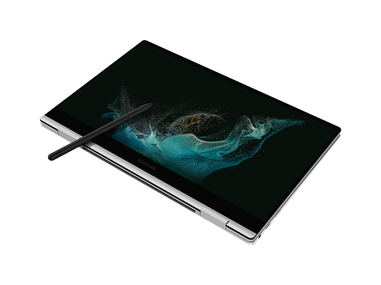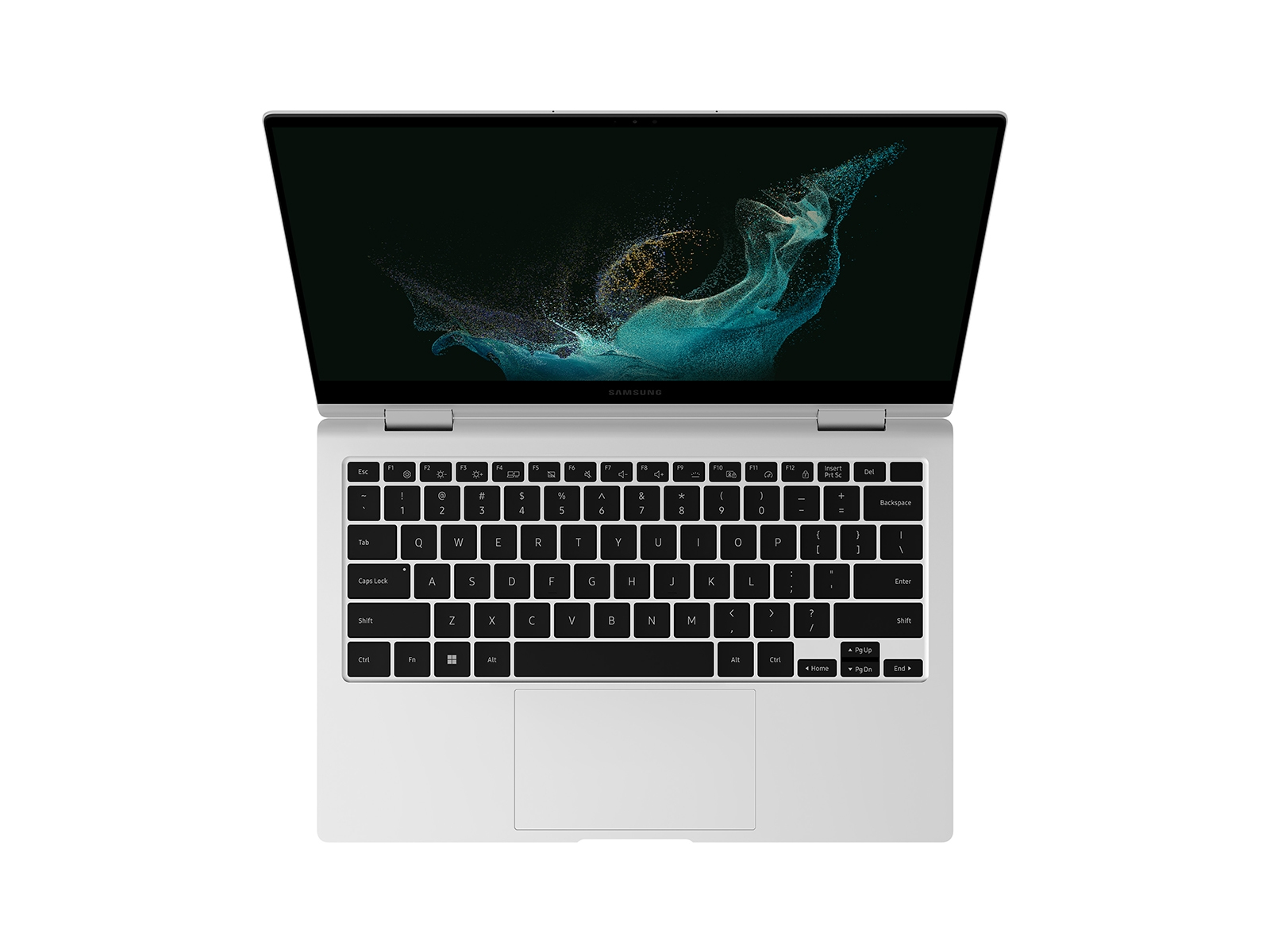 Samsung Book2 Pro 360. Type product: Hybride (2-in-1), Vormfactor: Convertible (Map). Processorfamilie: Intel® Core™ i7, Processormodel: i7-1165G7. Beeldschermdiagonaal: 33,8 cm (13.3″), HD type: Full HD, Resolutie: 1920 x 1080 Pixels, Touchscreen. Intern geheugen: 16 GB, Intern geheugentype: LPDDR5-SDRAM. Totale opslagcapaciteit: 512 GB, Opslagmedia: SSD. On-board graphics adapter model: Intel Iris Xe Graphics. Inclusief besturingssysteem: Windows 11 Home. Kleur van het product: Zilver