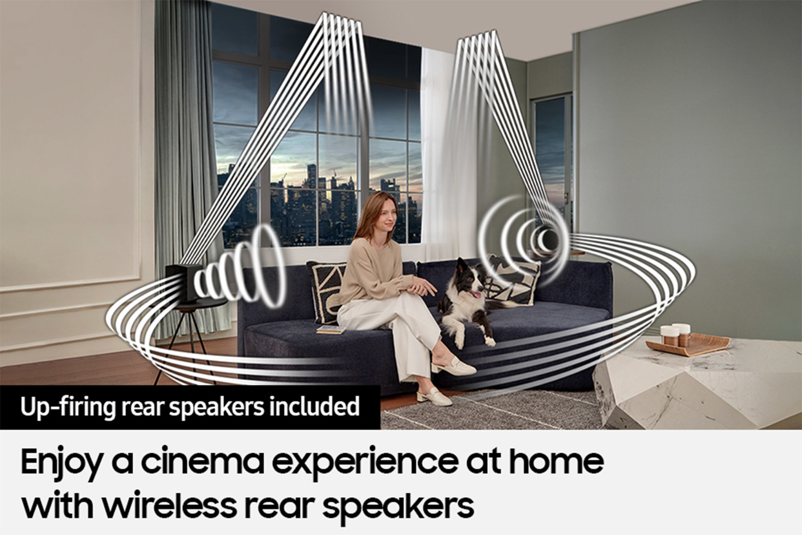 Met de meegeleverde Wireless Surround Kit kun je je soundbar uitbreiden tot een surround geluidssysteem, zonder rommelige kabels. Je kunt een kanaalsysteem creëren met je soundbar voor een echte surroundgeluidservaring. Geniet van basgeluid, ook zonder kabels. Plaats de draadloze subwoofer ergens in de kamer en omring jezelf met diepere en rijkere lage tonen met de Samsung HW-Q990C