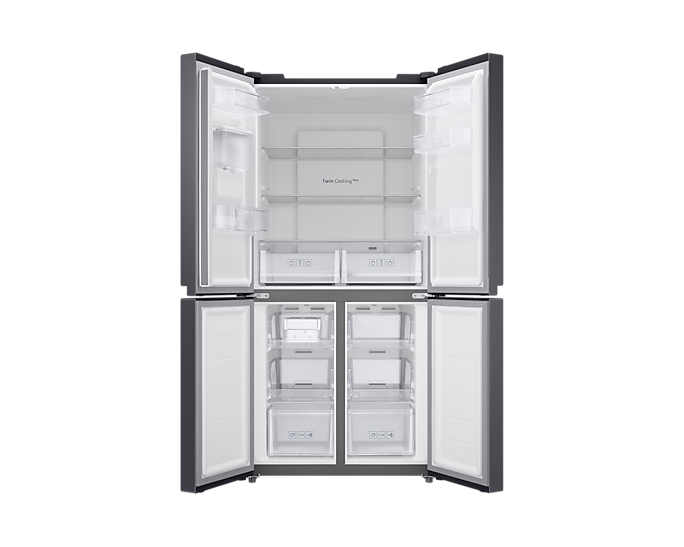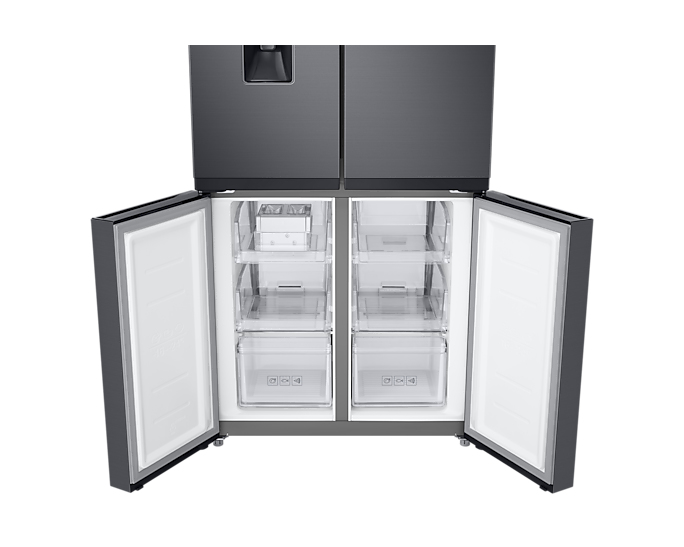 Samsung RF48A401EB4/EO. Apparaatplaatsing: Vrijstaand, Productontwerp: Frans deur, Kleur van het product: Zwart. Totale nettocapaciteit: 488 l, Klimaatklasse: SN-T, Geluidsemissieklasse: C. Nettocapaciteit koelkast: 329 l, Soort lamp: LED. Nettocapaciteit vriezer: 159 l, Vriezer positie: Onder, Vriescapaciteit: 12 kg/24u. Energie-efficiëntieklasse: E, Jaarlijks energieverbruik: 298 kWu, Energie-efficiëntieschaal: A tot G