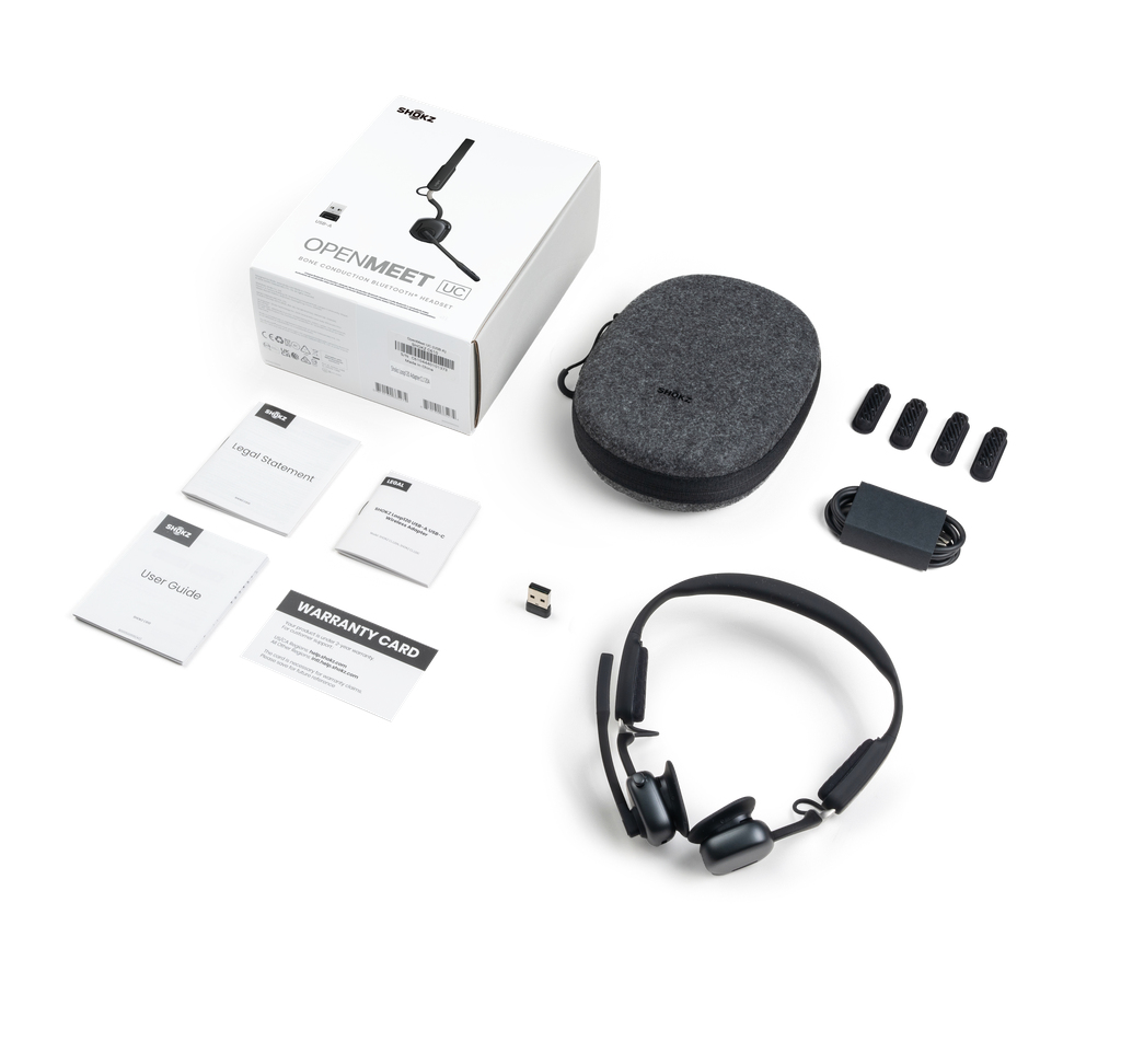 | Verpakkingsinhoud | 1 x Headset, 1 x Hard Case, 1 x USB2.0 CM-CM Data Cable, 1 x Manual, 1 x Legal Statement, 1 x Warranty Card, 2 x pairs Cushions, 1 x Shokz Loop120 (USB A adapter) |