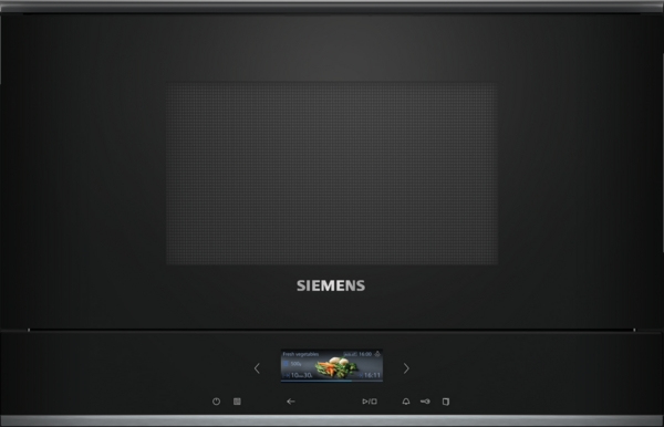 Siemens BF722R1B1. Apparaatplaatsing: Ingebouwd, Type product: Solo-magnetron, Inhoud (binnenkant): 21 l, Magnetronvermogen: 900 W, Ingebouwd display, Type beeldscherm: TFT, Soort bediening: Touch, Kleur van het product: Zwart
