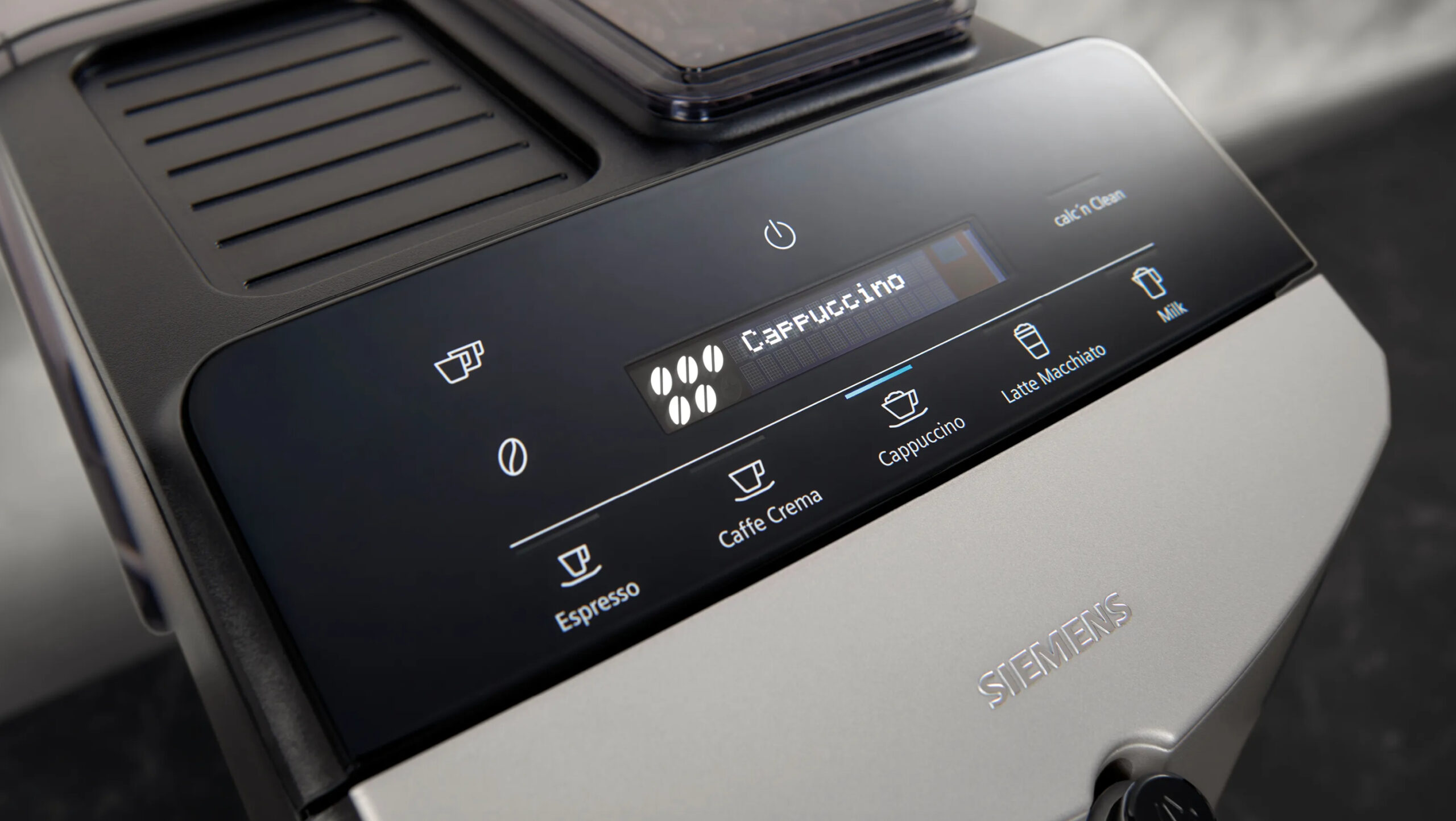 Siemens EQ.300 TF303E07. Type product: Espressomachine, Koffiezet apparaat type: Volledig automatisch, Capaciteit watertank: 1,4 l, Koffie invoertype: Koffiebonen, Reservoir voor gezette koffie: Beker, Ingebouwde molen. Type beeldscherm: LCD. Vermogen: 1300 W. Kleur van het product: Zwart, Metallic, Zilver