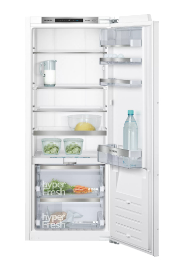 Siemens iQ700 KI51FADE0. Nettocapaciteit koelkast: 220 l, Klimaatklasse: SN-T, Geluidsniveau: 37 dB. Aantal planken koelkast: 5, Aantal groente lades: 1. Soort lamp: LED. Deurscharnieren: Rechts. Jaarlijks energieverbruik: 139 kWu, Energie-efficiëntieklasse: E. Gewicht: 53,3 kg. Kleur van het product: Wit