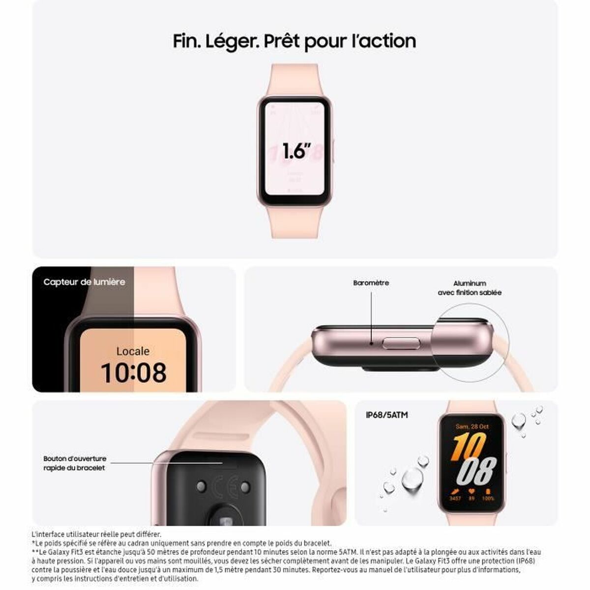 Gestroomlijnde stijl ontmoet slimme functionaliteit. De Samsung Galaxy Fit 3 Pink 40mm Smartwatch biedt de perfecte balans tussen mode en fitnesstracking. De vrouwelijke roze tint en slanke aluminium behuizing passen naadloos bij elke look, terwijl het levendige 1,6″ AMOLED touchscreen display je verbonden houdt met wat belangrijk is. Of je nu naar de sportschool gaat of gewoon doorgaat met je dagelijkse bezigheden, dit slimme horloge houdt je hartslag, slaappatronen en dagelijkse activiteiten bij zonder je te belasten. De Galaxy Fit 3 is waterbestendig tot 50 meter en de batterij gaat dagenlang mee. Blijf gefocust op je doelen met workout tracking en aanpasbare wijzerplaten, en ga dan moeiteloos over naar ‘s nachts met het slanke, lichtgewicht ontwerp van deze compacte smartwatch. Met veelzijdige Bluetooth-connectiviteit, essentiële smartwatchfuncties en een prijs die past bij elke levensstijl, is de Galaxy Fit 3 een stijlvolle metgezel die je nooit tegenhoudt.