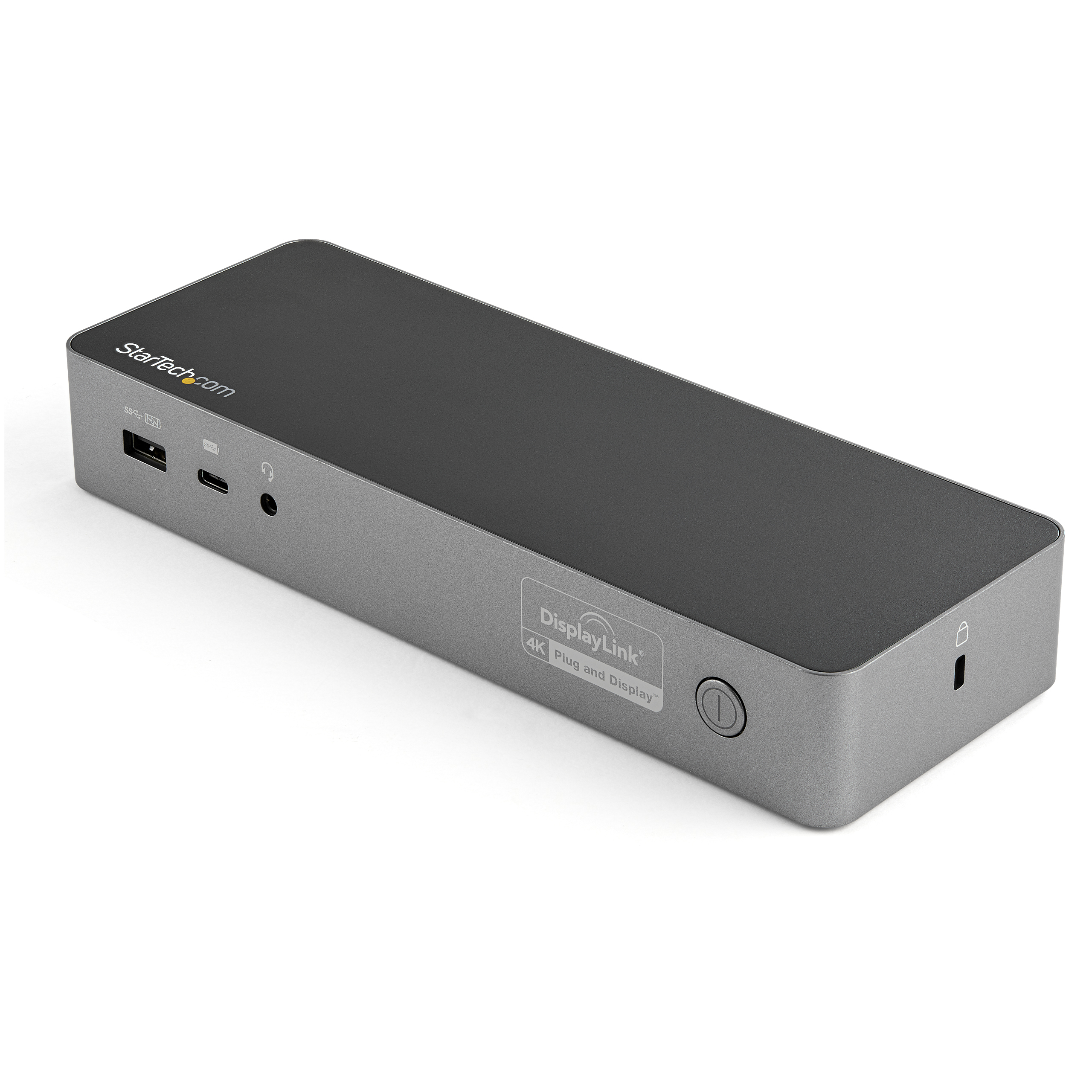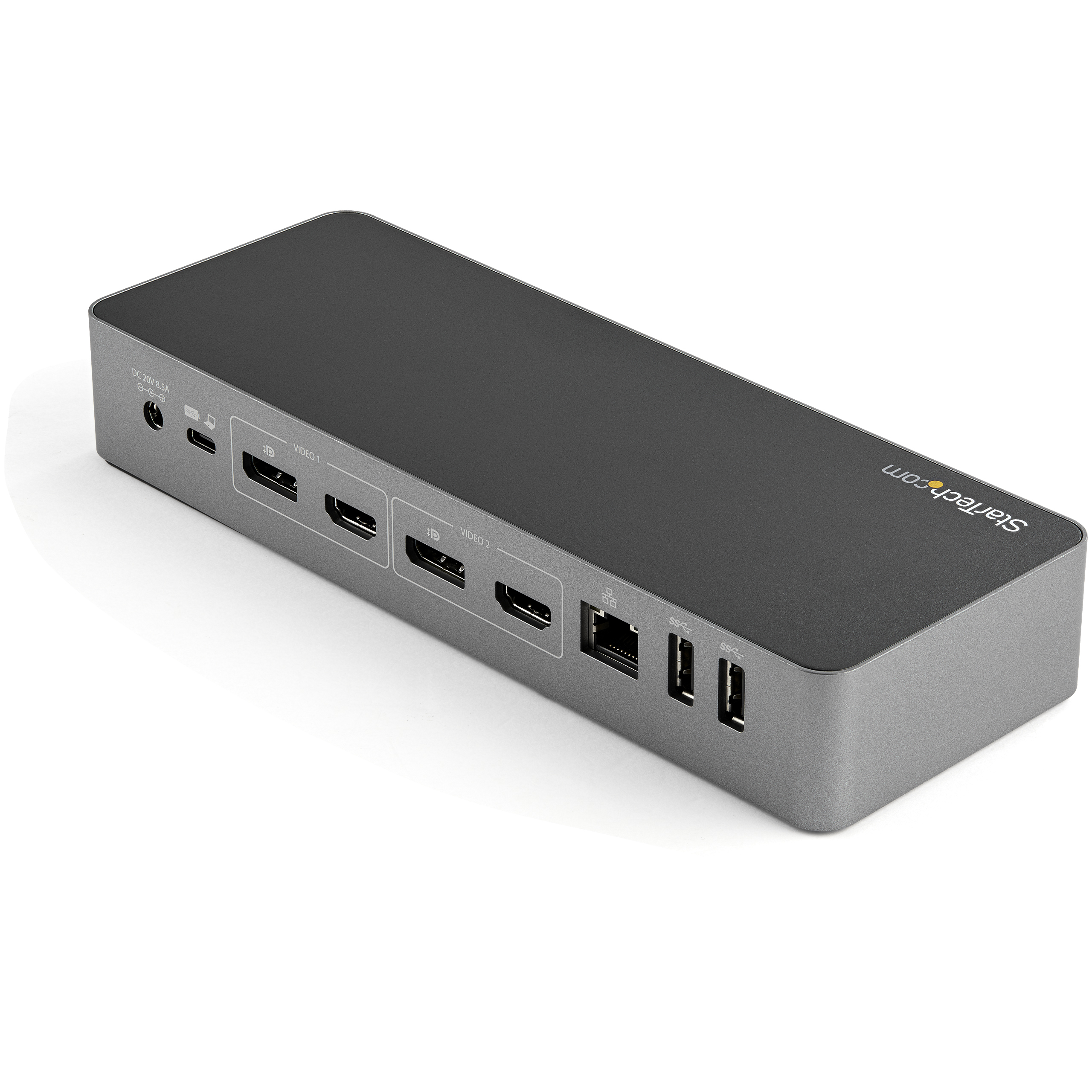 StarTech.com Universele Laptop Docking Station, Hybrid USB-C & USB-A Dock, Dual 4K DP & HDMI, 100W PD, Mac / Windows / Chrome OS, 4x USB 5Gbps Hub, GbE. Connectiviteitstechnologie: Bedraad, Hostinterface: USB 3.2 Gen 1 (3.1 Gen 1) Type-C, Type aansluitplug: 3,5 mm. Netwerkstandaard: IEEE 802.3, IEEE 802.3ab, IEEE 802.3u. Kleur van het product: Zwart, Grijs, Overdrachtssnelheid: 5 Gbit/s, Resolutie (maximum digitaal): 5120 x 2880 Pixels. AC-ingangsspanning: 100 – 240 V, Stroom: 2.5 A, Netvoeding: 100 W. Ondersteunt Windows: Windows 10, Windows 10 Education, Windows 10 Education x64, Windows 10 Enterprise, Windows 10…, Ondersteunt Mac-besturingssysteem: Mac OS X 10.11 El Capitan, Mac OS X 10.12 Sierra, Mac OS X 10.14 Mojave, Mac OS X 10.15 Catalina,…, Andere ondersteundende systemen: ChromeOS