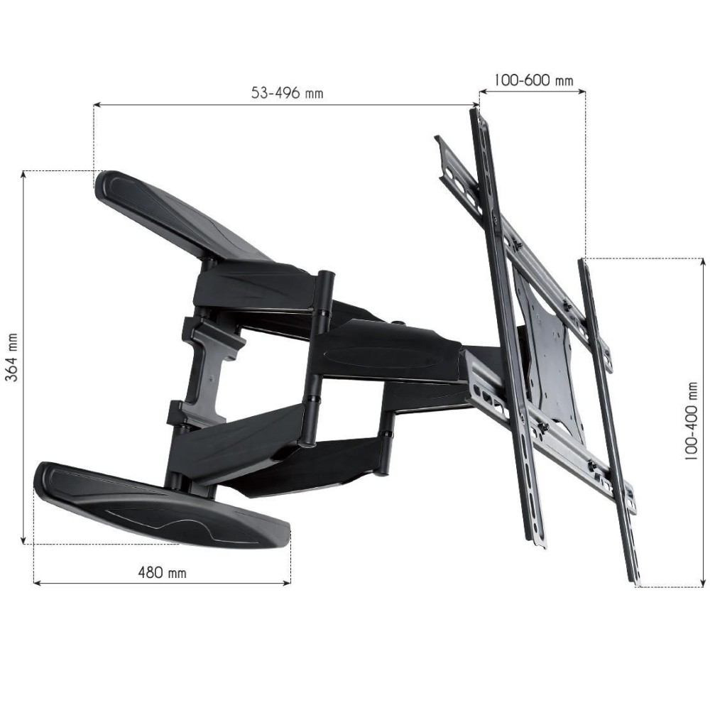 Techly ICA-PLB 172L. Maximale gewichtscapaciteit: 50 kg, Minimale schermgrootte: 101,6 cm (40″), Maximale schermgrootte: 2,03 m (80″), Montage interface compatibiliteit (min): 600 x 400 mm, Montage interface compatibiliteit (max): 600 x 400 mm. Bereik kantelhoek: -2 – 12°, Afstand tot de muur (min): 5,3 cm, Afstand tot de muur (max.): 49,6 cm. Kleur van het product: Zwart