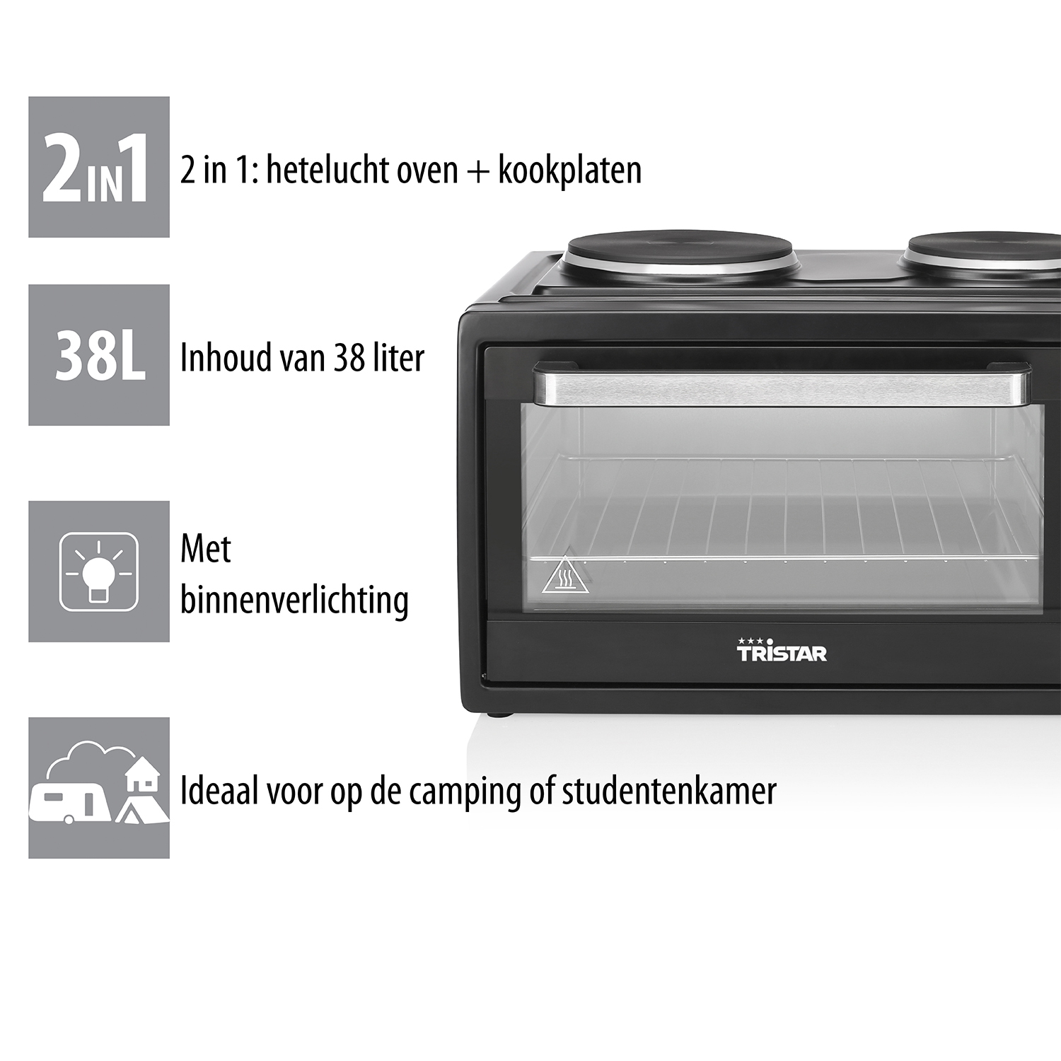Tristar OV-1443 Convectie oven met 2 kookplaten