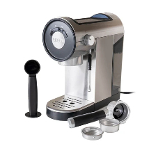 Unold Piccopresso. Type product: Espressomachine, Capaciteit watertank: 0,9 l, Koffie invoertype: Gemalen koffie, Reservoir voor gezette koffie: Beker, Aantal spuiten: 2. Vermogen: 1360 W. Kleur van het product: Zwart, Roestvrijstaal
