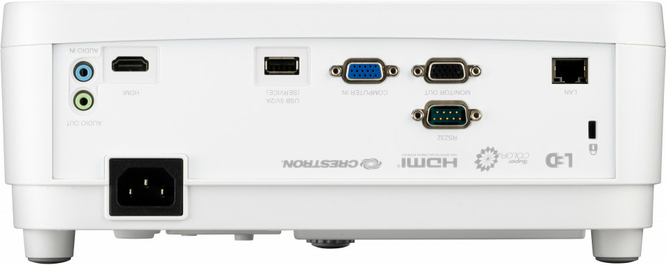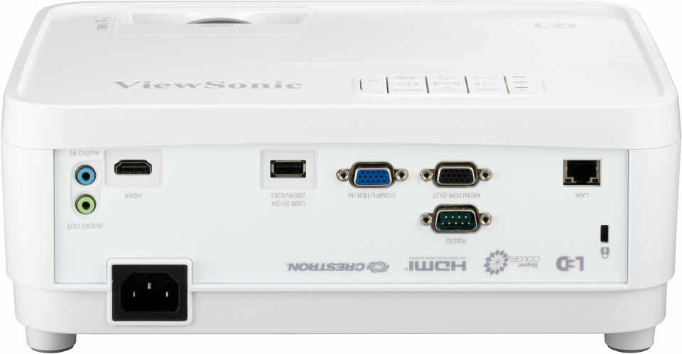 Viewsonic LS560W. Projector helderheid: 3000 ANSI lumens, Projectietechnologie: LED, Projector native resolution: WXGA (1280×800). Type lichtbron: LED, Levensduur van de lichtbron: 30000 uur. Zoom type: Vast, Off-set: 110 procent. Ondersteunde grafische resoluties: 640 x 480 (VGA), 1920 x 1080 (HD 1080), Ondersteunde video-modi: 480i, 480p, 576i, 720p, 1080i, 1080p. Soort serieële aansluiting: RJ-45, RS-232, HDMI-connector type: Volledige grootte