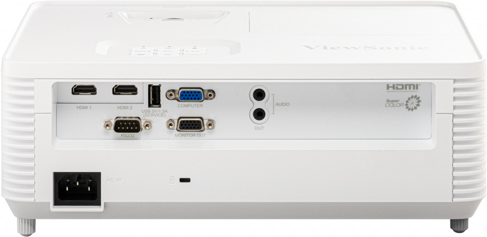 Viewsonic PA700W. Projector helderheid: 4500 ANSI lumens, Projector native resolution: WXGA (1280×800), Typische contrastverhouding: 12500:1. Type lichtbron: Lamp, Levensduur van de lichtbron: 4000 uur, Levensduur van de lichtbron (besparingsmodus): 12000 uur. Focus: Handmatig, Brandpuntbereik: 21.85 – 24 mm, Diafragma (F-F): 2,41 – 2,53. Formaat analoog signaal: NTSC, PAL, SECAM, Ondersteunde grafische resoluties: 640 x 480 (VGA), 1920 x 1080 (HD 1080), Ondersteunde video-modi: 480i, 480p, 576i, 576p, 720p, 1080i, 1080p. Soort serieële aansluiting: RS-232, HDMI-connector type: Volledige grootte, Type onderhoudspoort: USB Type-A
